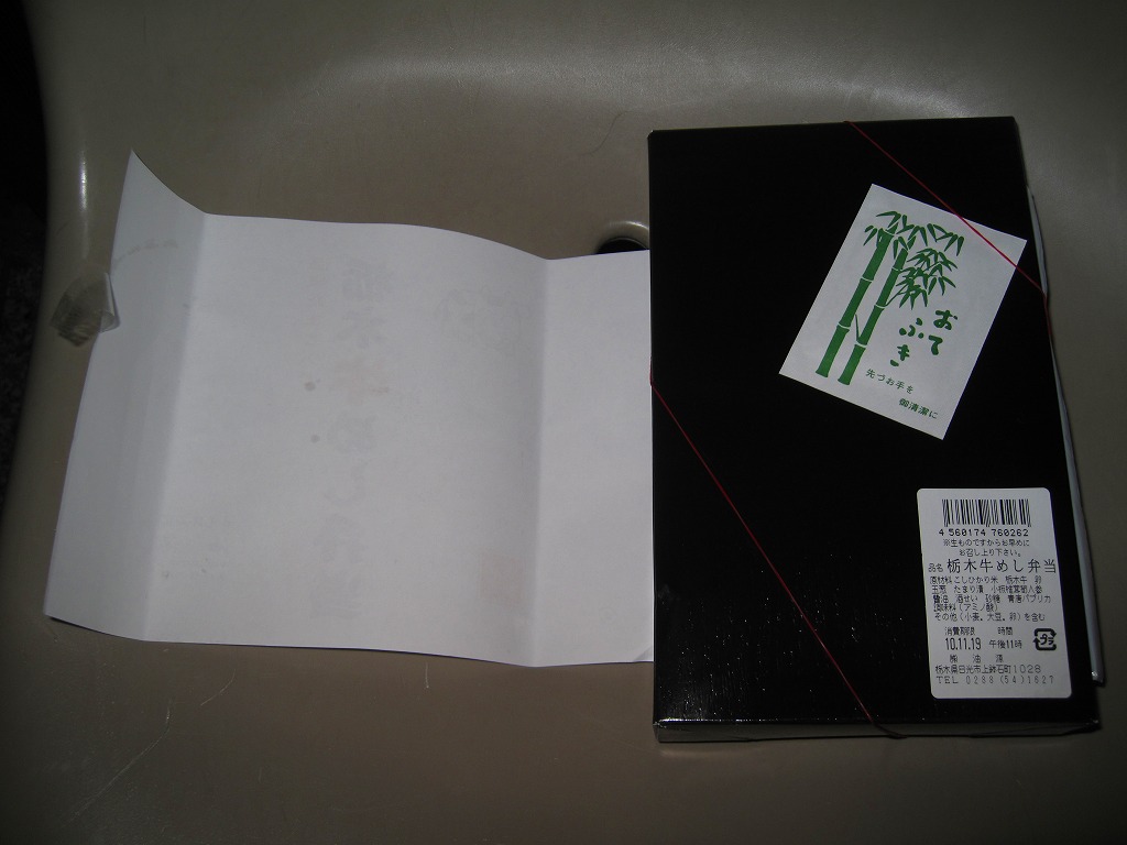 2010(平成22)年11月19日に購入した、東武日光駅弁の掛紙。上記の2022年のものと変わらない。容器も中身も変わらない。