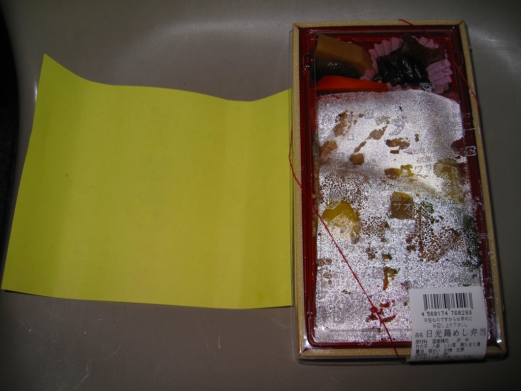 2009(平成21)年11月20日に購入した、東武日光駅弁の掛紙。上記の2022年のものと変わらない。容器も中身も変わらない。