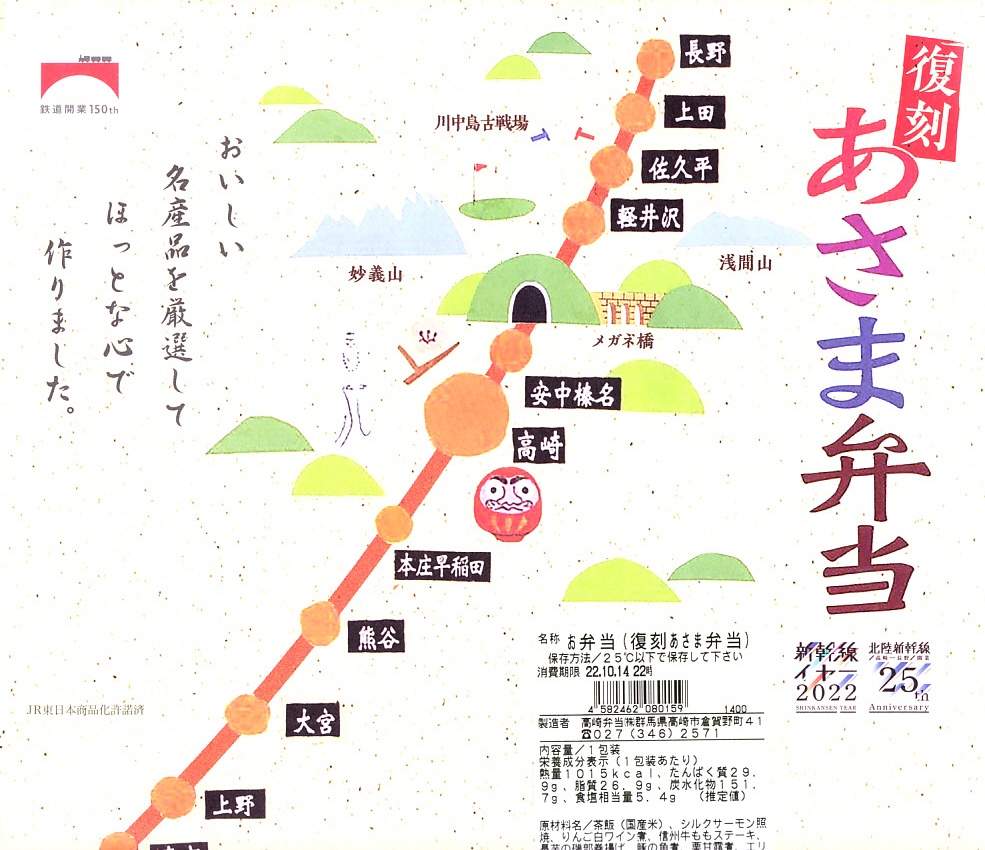 2022(令和4)年10月1日に高崎駅で発売、同月のJR東日本の駅弁キャンペーン「駅弁味の陣2022」にエントリー。かつて長野新幹線の開業10周年で2007年に売られた記念駅弁「あさま弁当」を、北陸新幹線の開業25周年を機に復刻して販売した。市販の仕出し容器を包む掛紙の絵柄は、15年前の当時のスリーブの絵柄に似て、描くものがだいぶ省略されている。これに「上州D51弁当」の黒いプラ製の箸を添付した。