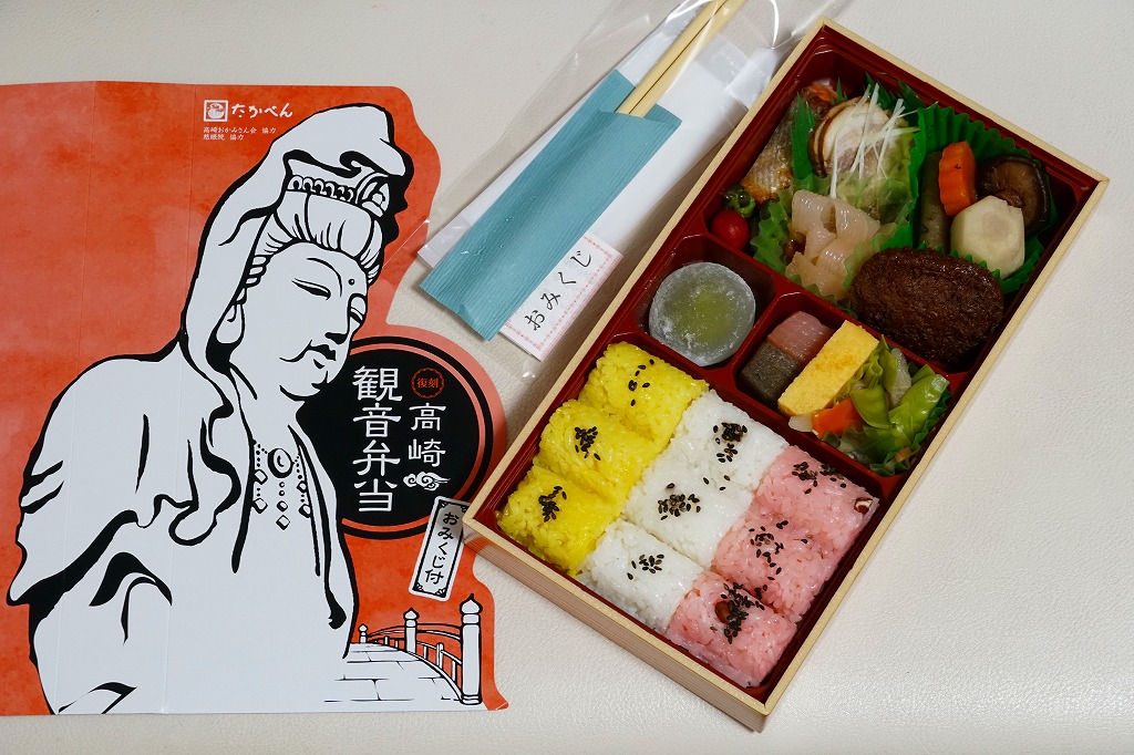 2024(令和6)年4月27日から5月6日まで、高崎駅のコンビニ「ニューデイズ」と土産物店「HANAGATAYA」計6店舗で販売。高崎駅の開業140周年を記念して、2009年から2010年まで売られたかつての高崎駅弁「高崎観音弁当」を復刻したものと、荻野屋の「峠の釜めし」の限定掛け紙版が販売された。