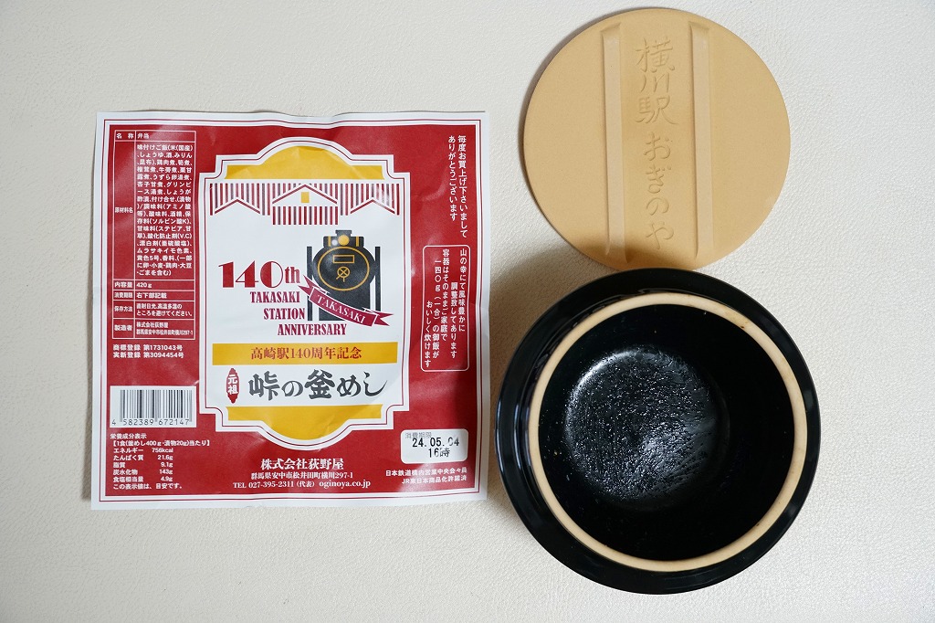 2024(令和6)年4月27日から5月6日まで、高崎駅のコンビニ「ニューデイズ」と土産物店「HANAGATAYA」計5店舗で販売。高崎駅の開業140周年を記念して、限定掛け紙をつけた荻野屋の「峠の釜めし」と、高崎弁当の「高崎観音弁当」の復刻版が販売された。掛紙は駅弁の現物で使用するものとは別に、これと同じ未使用品をもらえた。普段は茶色い釜飯型陶器は、ここでは黒くなった。中身は通常版と同じで、価格は200円高かった。