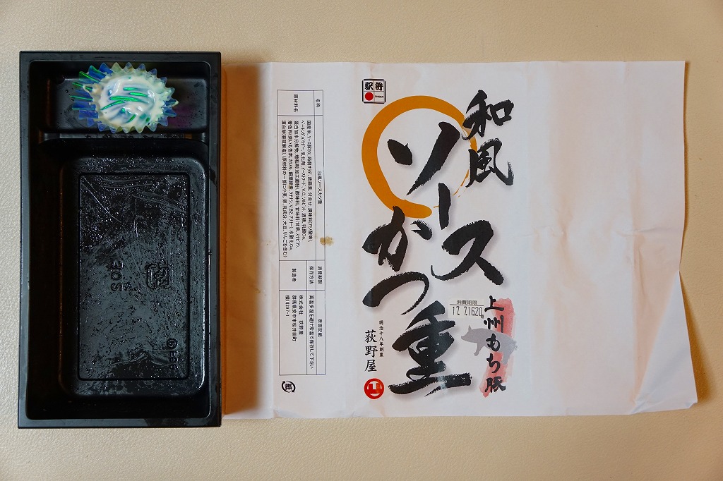2013(平成25)年までに高崎駅で発売か。調製元は高崎駅でなく横川駅の駅弁屋。長方形の容器に白飯を詰め、レタスを敷き、トンカツのソース漬けで覆い、紅生姜、こんにゃく、こんにゃくサラダ、たくあんを添える。特徴が薄い分、内容も味も可もなく不可もなし。調製元が誇る「峠の釜めし」との関連性は、何もない。2021年までの販売か。