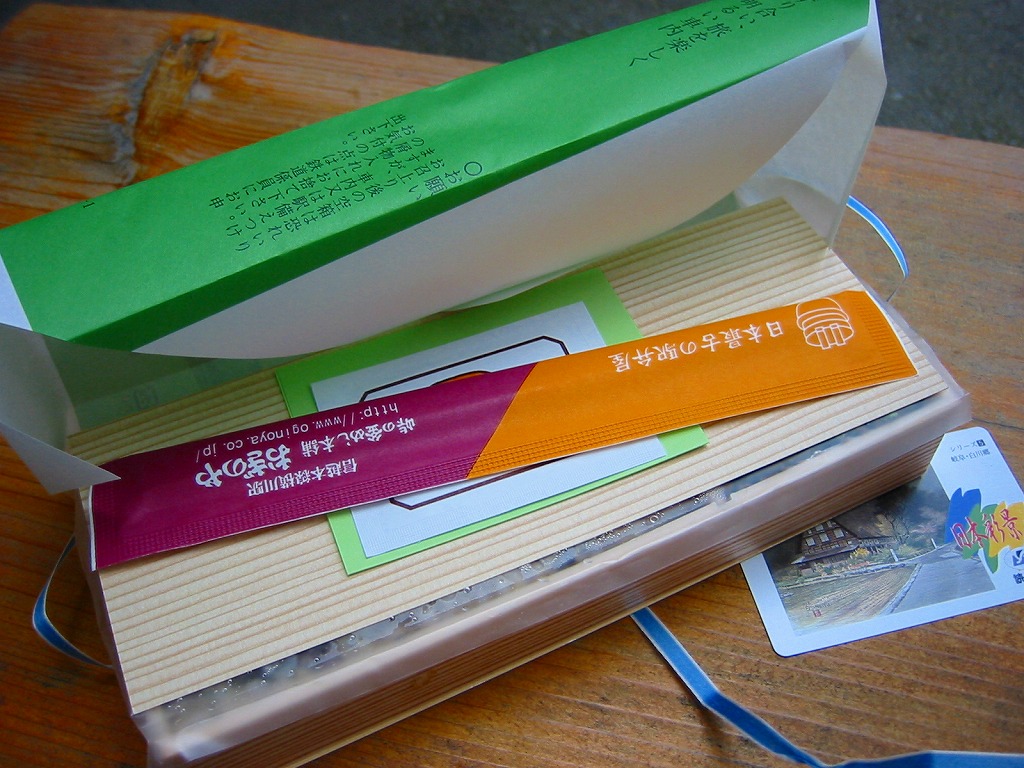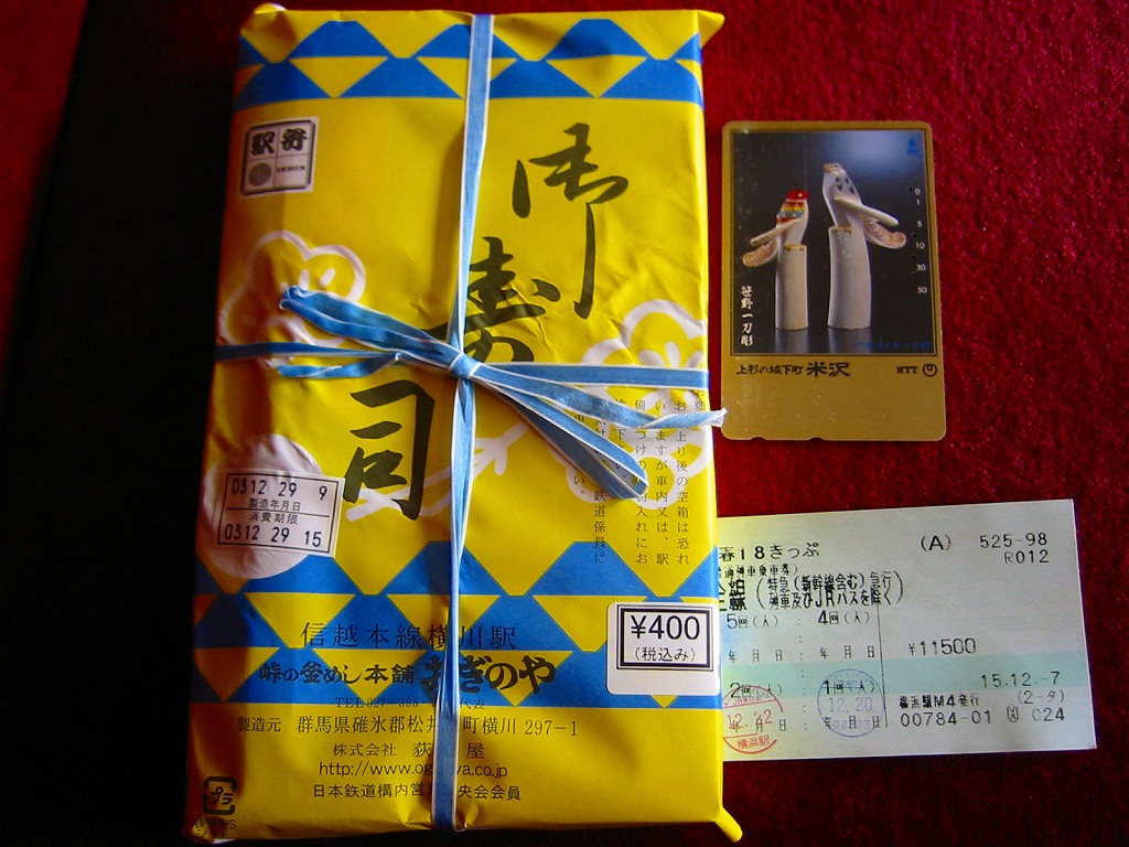 昔は、明治時代から昭和30年代頃までは、日本全国各地の駅弁はだいたい、幕の内弁当と、このような寿司であったらしい。1885(明治18)年から駅弁が売られる横川駅でも、1958(昭和33)年生まれの「峠の釜めし」がヒットするまでは、同じ状況だったのだろうか。今では「峠の釜めし」以外の駅弁は、まず買えない。横川駅で釜飯以外の駅弁が買えたのは、9年ぶりであった。
