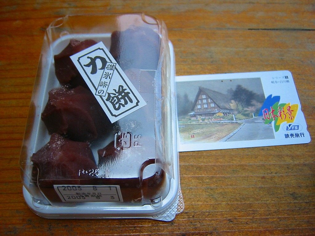 上記の商品「碓氷峠の力餅」の、2003(平成15)年時点での姿。上記の2024年のものと同じ。中身はもちろん、容器もシールもまったく同じ。