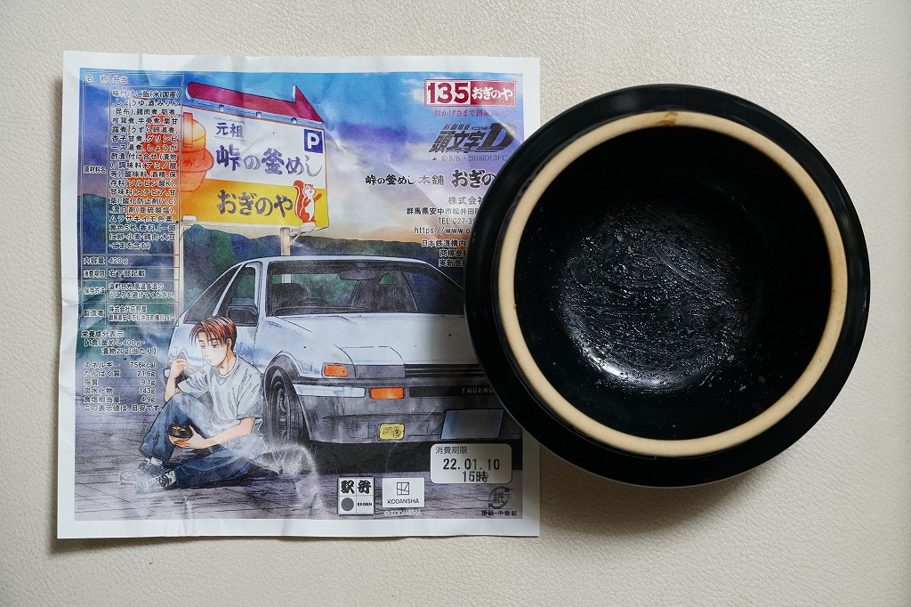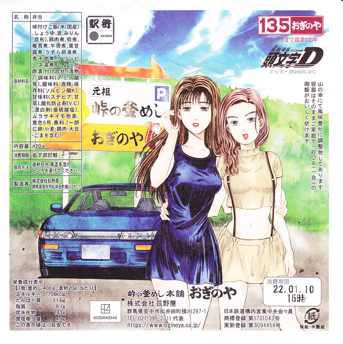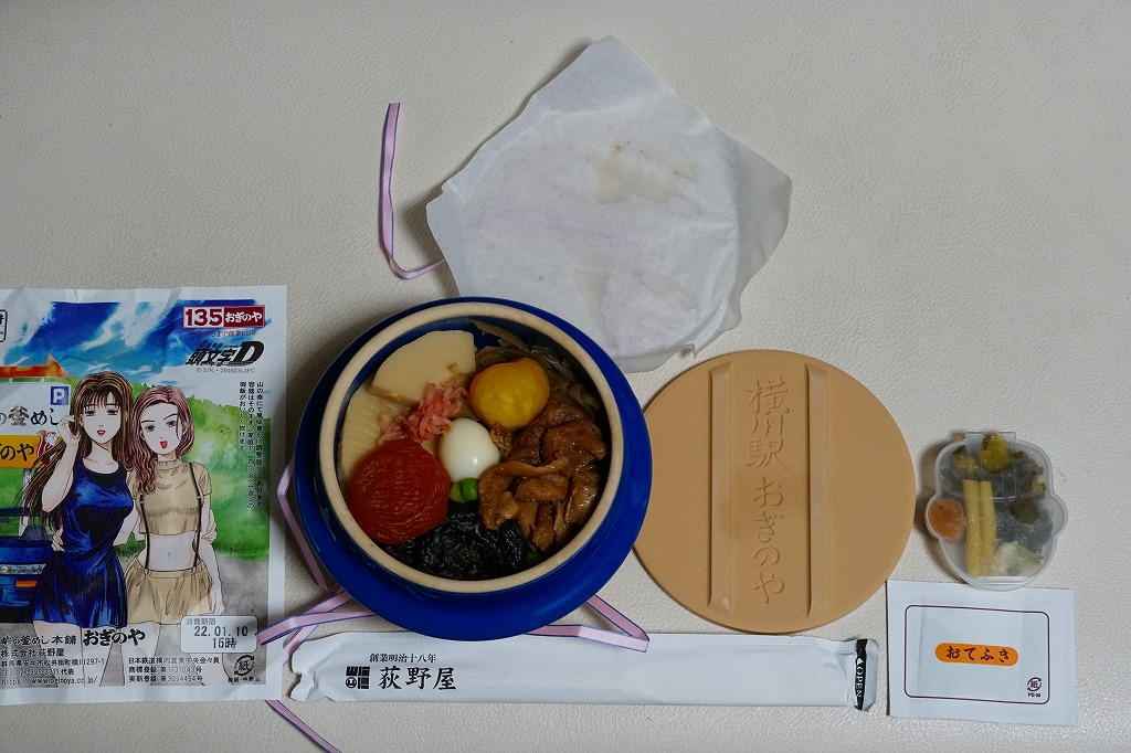 2021(令和3)年11月6、7、13、14日に荻野屋横川店と関越自動車道上里サービスエリアで販売。翌2022年1月の京王百貨店の駅弁大会で予約販売。横川駅の駅弁「峠の釜めし」について、しげの秀一の漫画作品「頭文字D」(イニシャル・ディー)で、今回は2016年公開の映画「新劇場版 頭文字D Legend3 −夢現−」とのコラボにより、色違いの器と特製の掛紙2種類を用いて販売した。