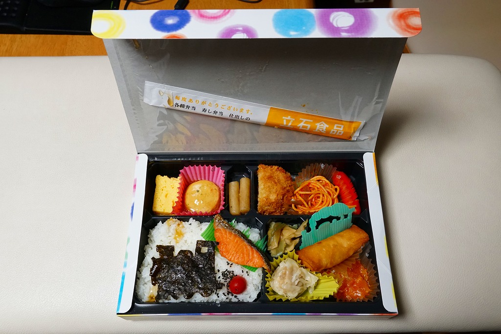 もともとは、秩父農工科学高等学校と秩父鉄道や秩鉄商事が協力し、同校フードデザイン科の開発と横瀬町の業者の調製により、2014(平成26)年3月から鉄道イベントで、8月中はSL列車で販売したお弁当。今回購入したものは、当時と弁当の名称こそ同じだが、中身(12区画のなんでもまるごと弁当)、価格(1,200円)、調製元が異なるため、歴史は断絶している模様。