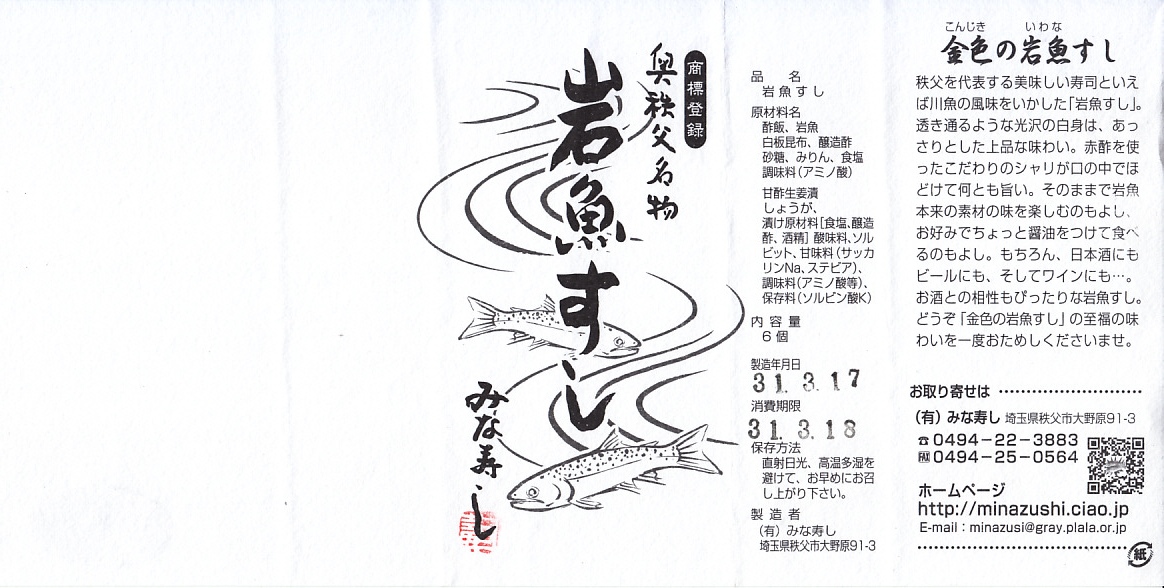 有限会社 みな寿し 埼玉県秩父市大野原91−3 0494(22)3883 https://minazushi.ciao.jp/