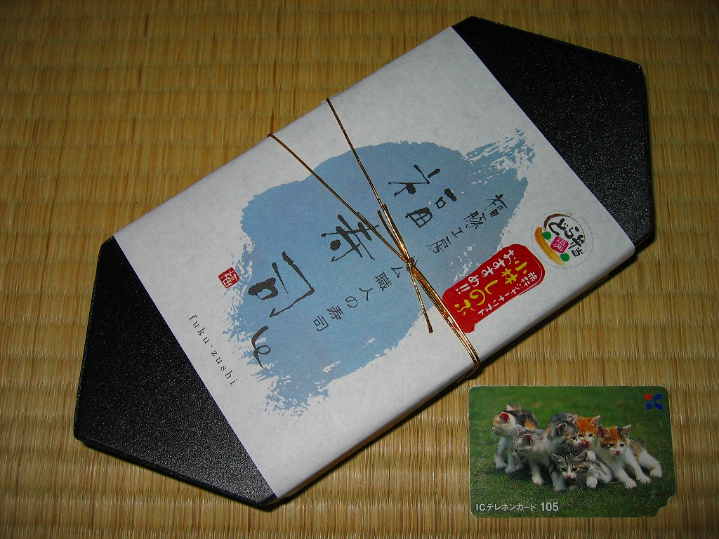 速弁のNEXCO東日本版「どら弁当」のシリーズ第4弾として、2007(平成19)年12月22日に上里サービスエリアで発売。個性的な黒い六角形の容器に、商品名やロゴマークなどを描いた掛紙を巻いて、ゴムでしばる。中身はハムやソーセージのにぎり寿司が8個と、付合せの漬物が少々。