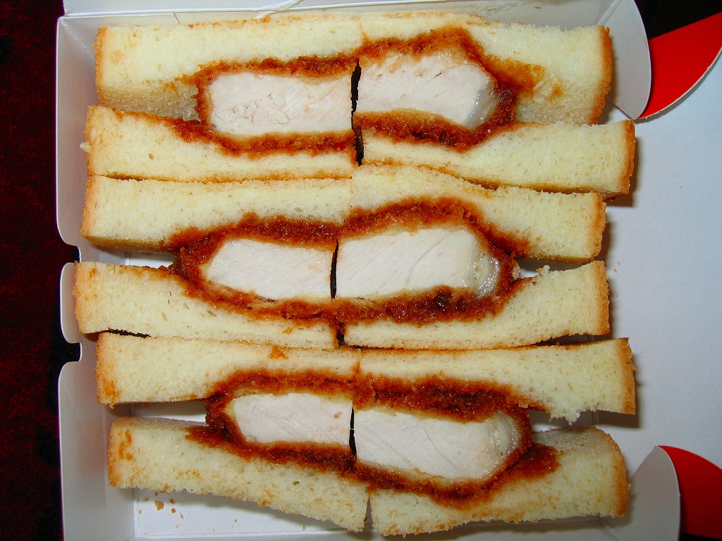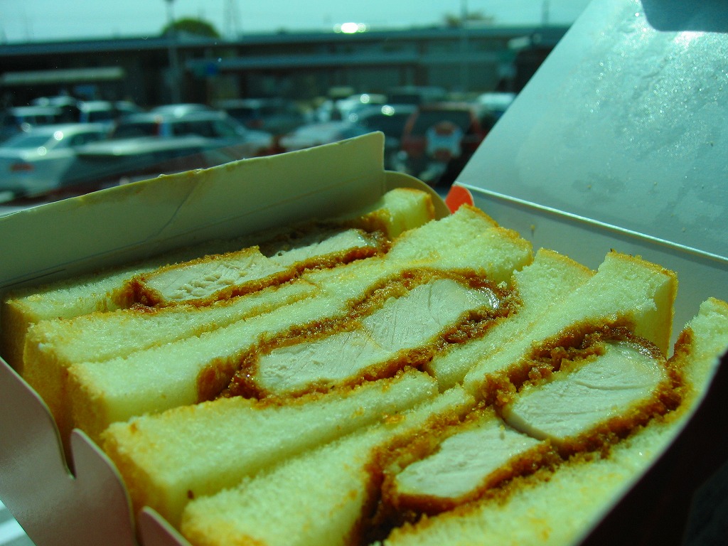 上里サービスエリアでも下り側のみで限定販売されている、オレンジ色の紙箱に入ったカツサンド。中身は軽く焼いた食パンでソースに漬けた厚みのあるヒレカツを挟んだだけのものが3切れ6ピース。売り場にて「やわらか」「手作り」「数量限定」「大人気!」と蛍光色で煽る商品の実力は、昭和の昔の硬くて臭いカツサンド。駅弁ならとっくの昔に淘汰されていそうなものだが、どうもここでは一部で渋い人気を得ているB級グルメ。