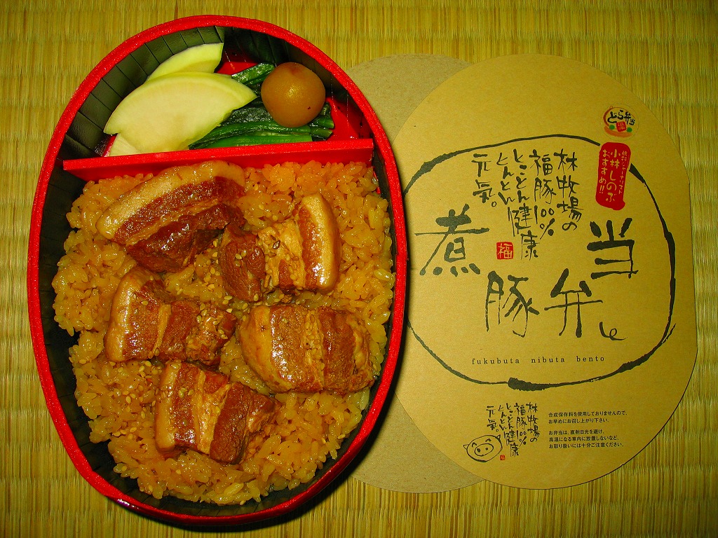 製造者を「調製元」と印刷する点も駅弁らしいのは、駅弁の女王とも呼ばれる旅行ジャーナリストが監修したためか。その調製元は群馬県前橋市の赤城山麓で「福豚」が売りの牧場直営レストランで、このどら弁当にもその肉が使われている。2009年頃までの販売か。