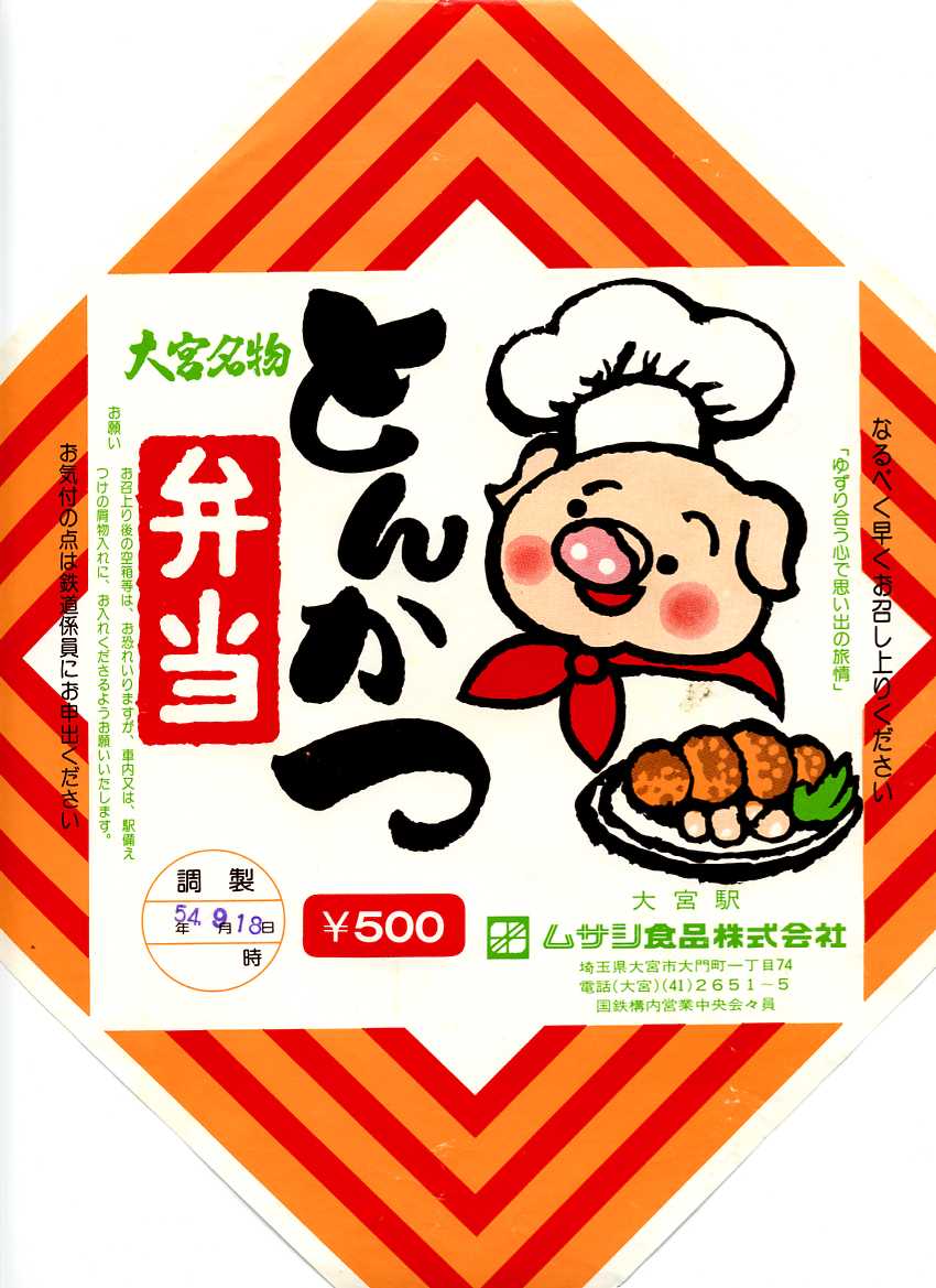 1979(昭和54)年9月18日の調製と思われる、昔の大宮駅弁の掛紙。なんでもない紙切れであったはずが、大宮駅はおろか埼玉県のすべてのJR駅から地元の駅弁屋が消えたため、今では希少性が増している。しかし当時も今も多くの利用者で賑わう大宮駅ほどの大きな駅で、なぜ駅弁が消えたのか、とても理解に苦しむ。