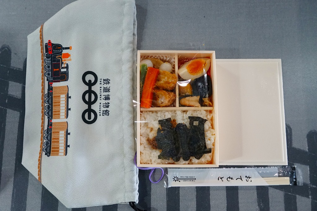 2010(平成22)年4月21日に、鉄道博物館(てっぱく)の館内で販売される弁当として発売した弁当「てっぱくランチBOX」を、鉄道博物館の開館5周年を機に、2012(平成24)年10月6日にリニューアル。引き続き弁当の名前でなく「鉄道博物館」と書かれた黒いきんちゃく袋は、以前の真っ黒が灰色か銀色になり、丸い容器が四角くなり、黒い容器が淡茶色になり、掛紙またはおしながきがなくなり、洋風の中身は和風になった。白御飯の上に機関車シルエットの海苔を貼り、とんかつ、ポテトフライ、カボチャ煮、くわいとひじきのサラダ、味付玉子、湯葉あんかけ、ナスとニンジンの煮物などを添える。2020年7月にリニューアルで終売。