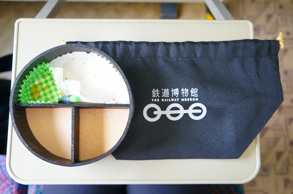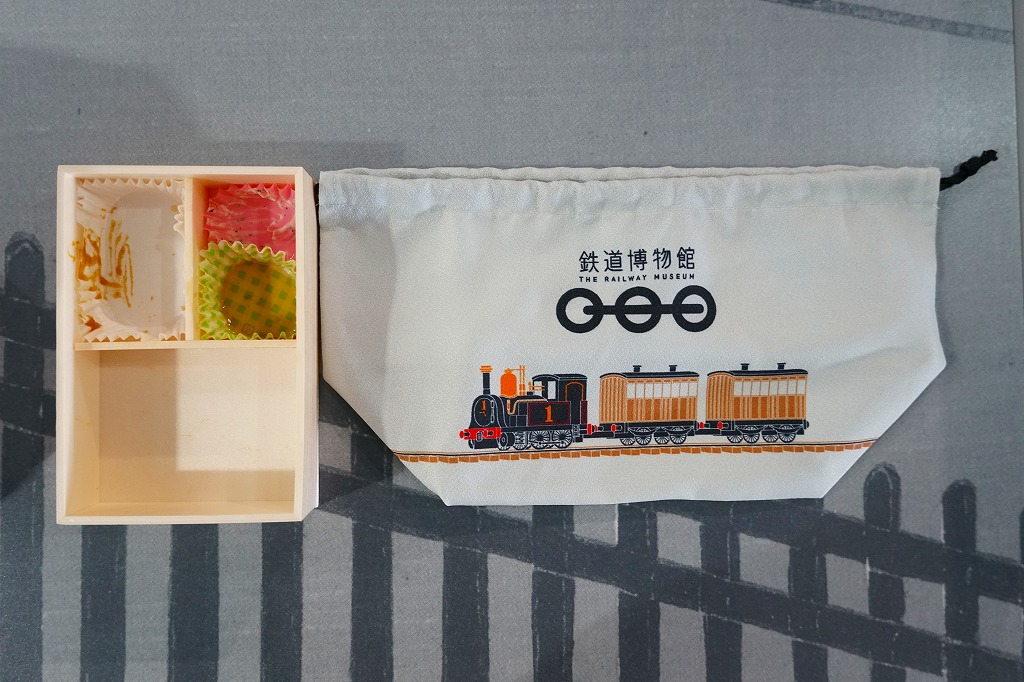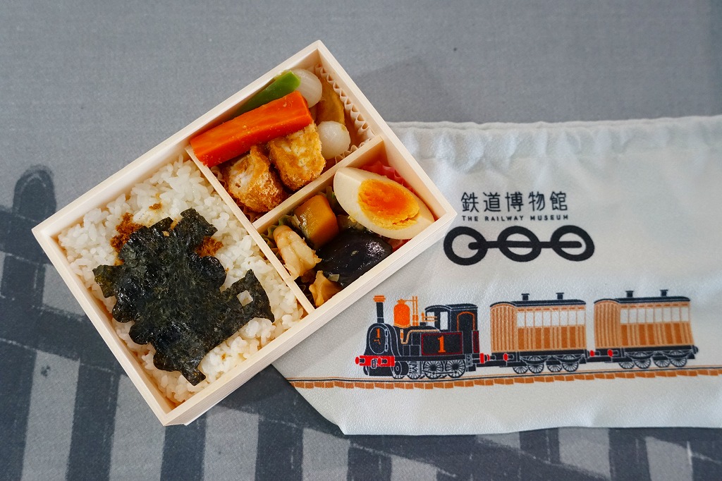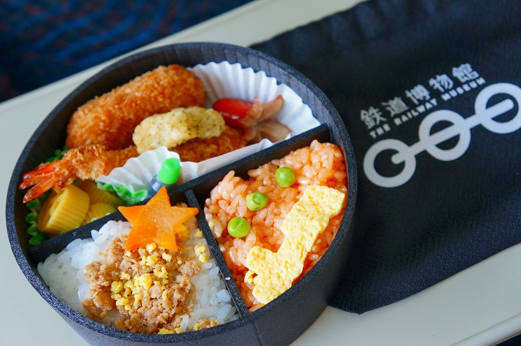 2010(平成22)年4月21日に、鉄道博物館(てっぱく)の館内で販売される弁当として発売。弁当の名前でなく「鉄道博物館」と書いた、蒸気機関車をイメージしたという真っ黒なきんちゃく袋に、同じく真っ黒な円形の容器を収める。中身は鶏そぼろと玉子そぼろの白御飯、汽車型たまごを貼るケチャップライス、エビフライ、カニクリームコロッケ、たこウインナー、星形ポテトフライ、車輪型とされるカレー味マカロニというお子様ランチ。きんちゃく袋に印刷される鉄道博物館のロゴマークのとおり、丸いグリーンピースとマカロニは3個ずつ入っていた。2007年10月にリニューアルで終売。