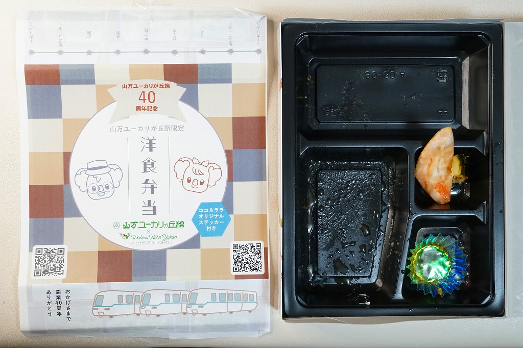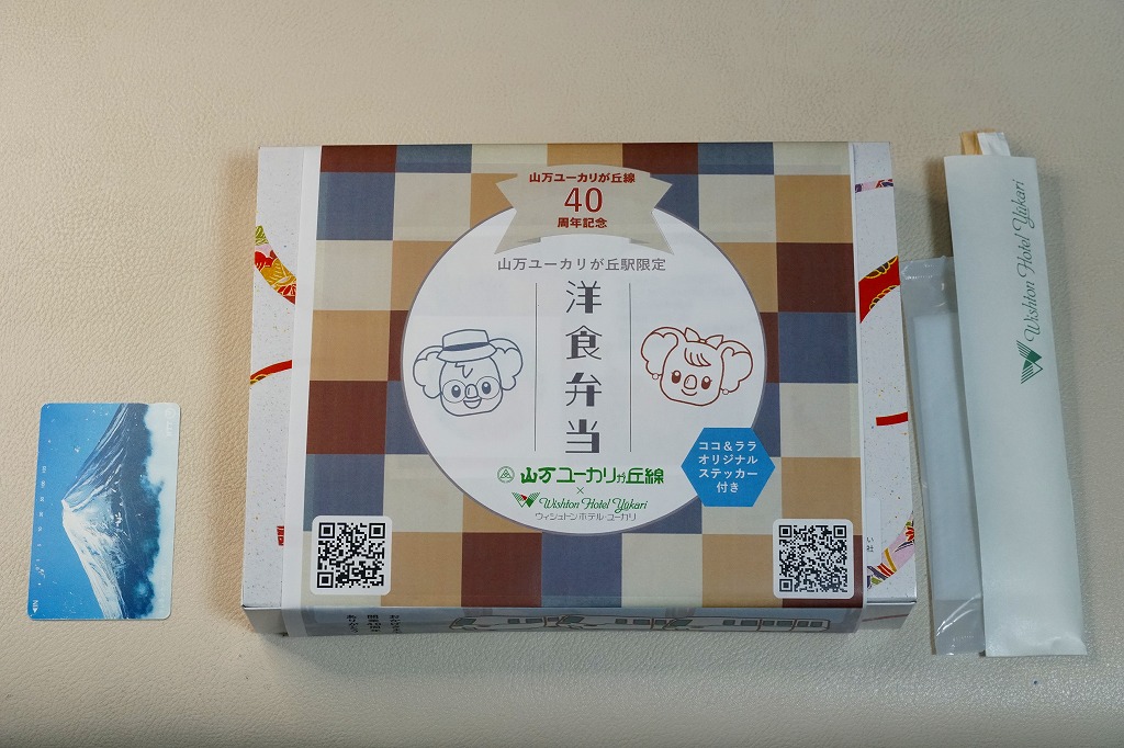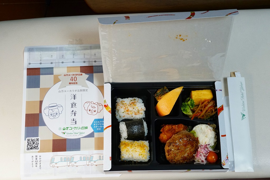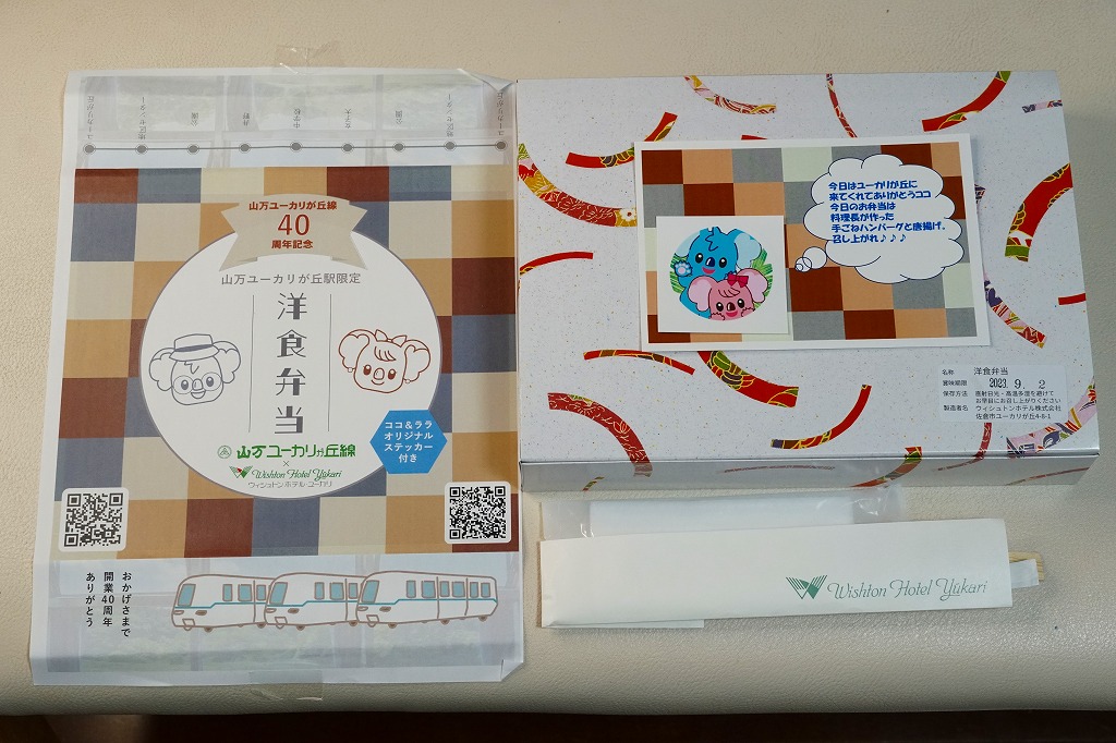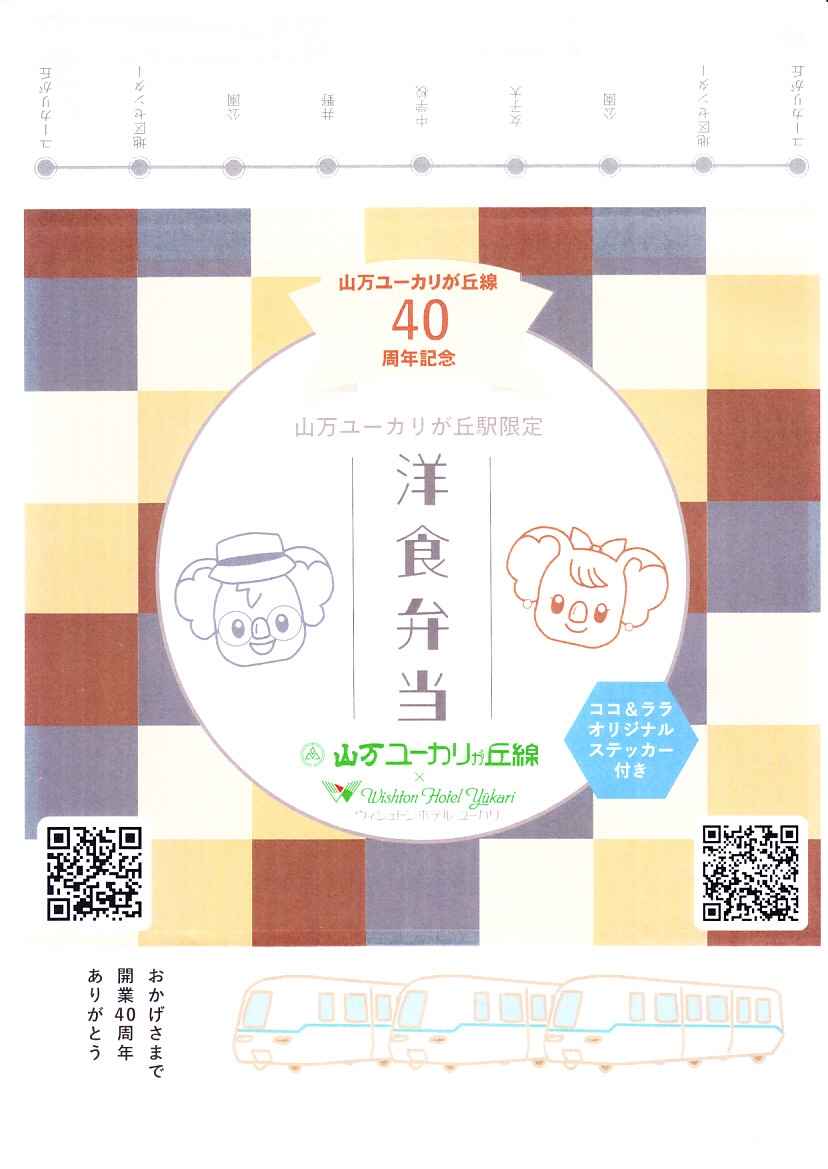 2023(令和5)年9月2,3,9,10日の4日間、ユーカリが丘で発売。この駅を起点とする新交通システムである山万(やままん)ユーカリが丘線で、史上初の駅弁。同線の運行開始40周年記念として、同社の孫会社が運営し開業25周年を迎えるウィシュトンホテル・ユーカリとコラボした特製オリジナル駅弁を、一日あたり10個程度販売した。