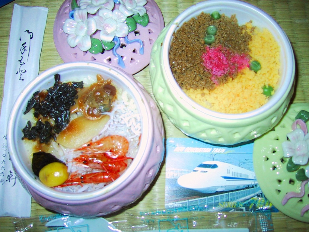 2004年頃までの販売か。2015年時点で現存しない模様だが、この容器と見栄えの駅弁は、千葉駅や小田原駅の駅弁として、断続的に駅弁大会で見掛ける気がする。