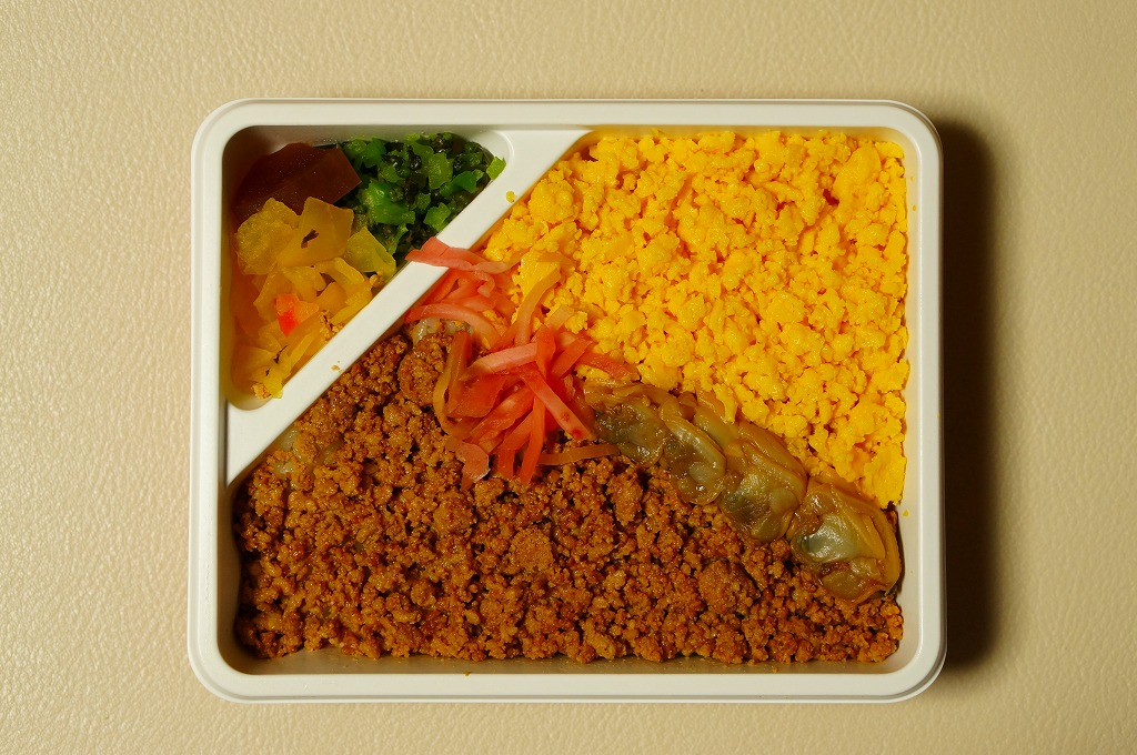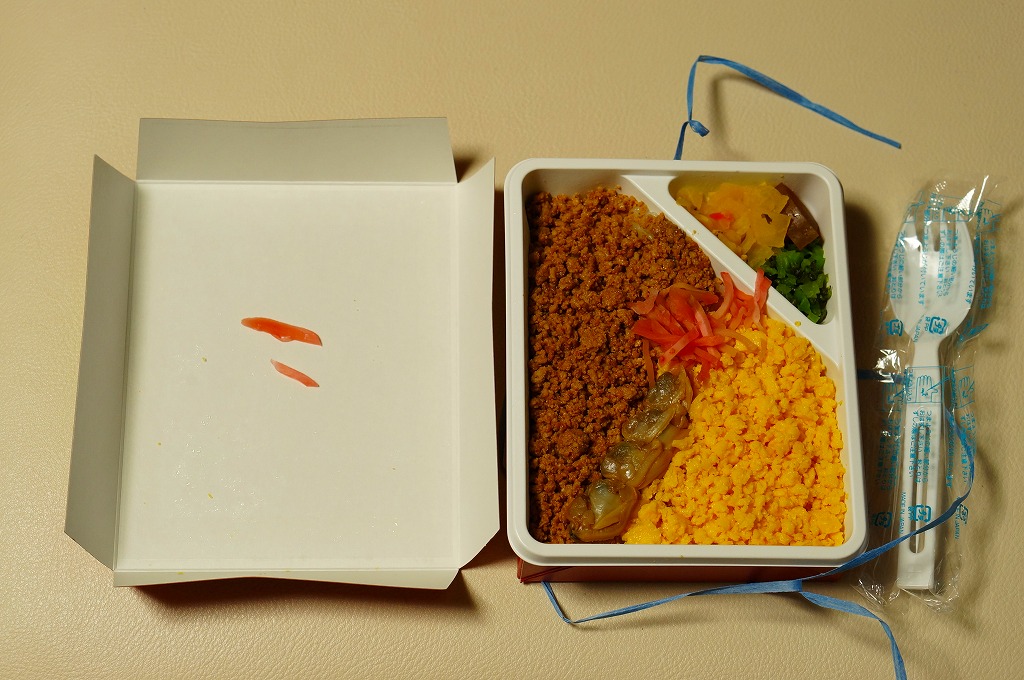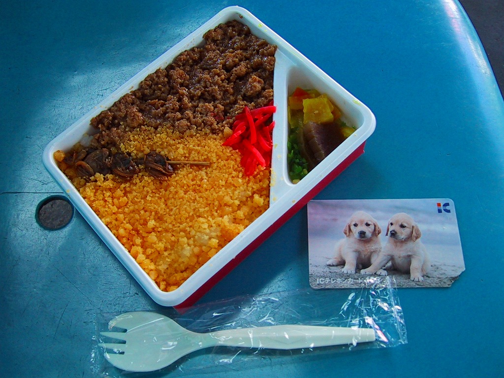上のように書けば上品さや風流さが薫ってきそうだが、中身を見ても食べても安物風。こんなチープさが多くの千葉駅弁の特徴であり、世界有数の国際空港で売られていても何も変わらない。分量はやや少なめ。2014年頃までの販売か。