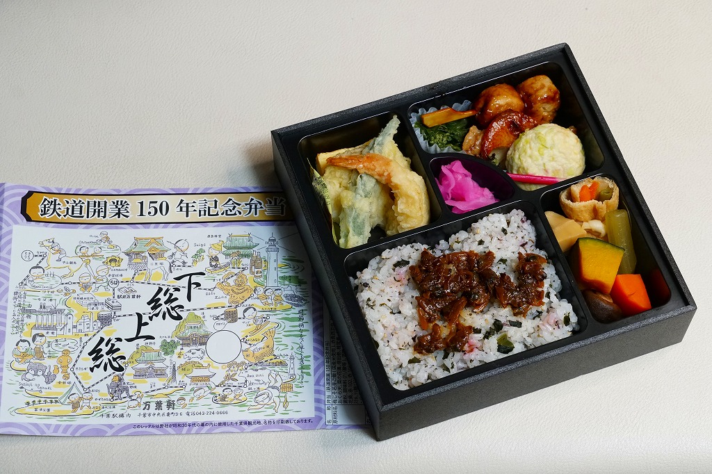 2022(令和4)年10月に発売、同月からのJR東日本の駅弁キャンペーン「駅弁味の陣2022」にエントリー。この年の鉄道開業150年にちなんだ弁当であることは明白だが、日本鉄道構内営業中央会の鉄道開業150年記念復刻駅弁企画には含まれていない。掛紙は「昭和30年代の幕の内に使用した千葉県観光地」とのことで、60年前の千葉名所がわかる。