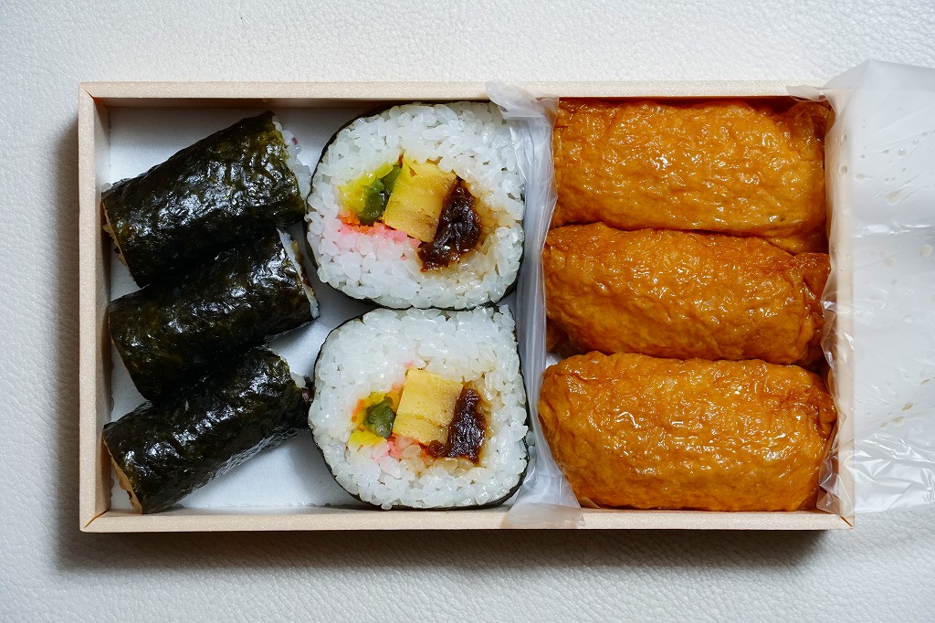 容器の大きさと黒い掛紙の絵柄は、終売前のものを踏襲した。中身はいなり寿司3個、太巻き寿司2個、かんぴょうの細巻寿司3個、甘酢生姜と醤油の袋。終売時は稲荷寿司4個と細巻寿司4個とガリで480円だったので、内容が変わり、値段が上がった。製造者の通信販売サイトに、同じ中身の寿司弁当「なでしこ」(540円)があり、これに掛紙を付けて供給されたものと思われる。価格は2020年の発売時や2022年の購入時で650円、2022年4月16日から700円、2023年1月から720円、6月16日から780円、2025年2月20日から820円。10月から「消費者物価指数に連動した「時価販売」」として、3か月ごとに価格を見直すといい、まずは847円で販売。