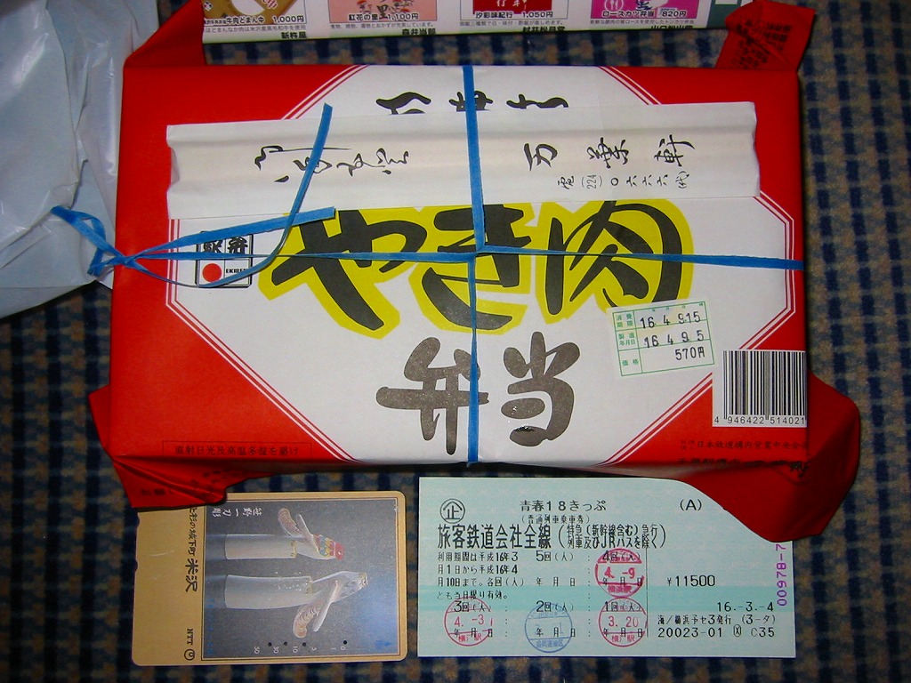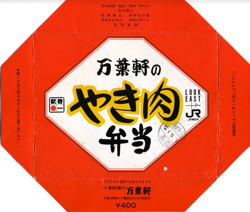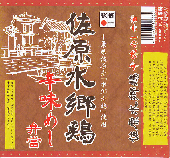 2004(平成16)年4月9日に購入した、千葉駅弁の掛紙。法定の表示の差異はあるが、この絵柄は長らく変わらない。中身も上記の2022年のものと、まったく同じ。