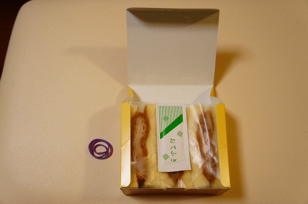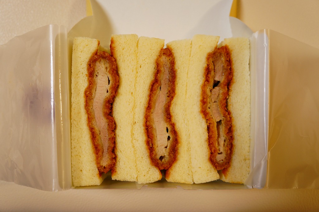 2011(平成23)年か、それ以前に発売か。商品名などを記した紙箱に、3切れのカツサンドが収まる。値段と中身と味からして、上記の「千葉みそソース元気豚カツサンド」の後継作ではないかと思う。こちらはあのトンかつ弁当とは異なり、カツにまともな厚さと均質な身を持つ、ごく普通のカツサンドである。同じ容器で異なる味を持つカツサンドも、千葉駅で売られている模様。価格は購入時で550円、2015年時点で600円、2015年7月から650円、2019年時点で700円。2020年の春頃までに、ひっそりと終売か。