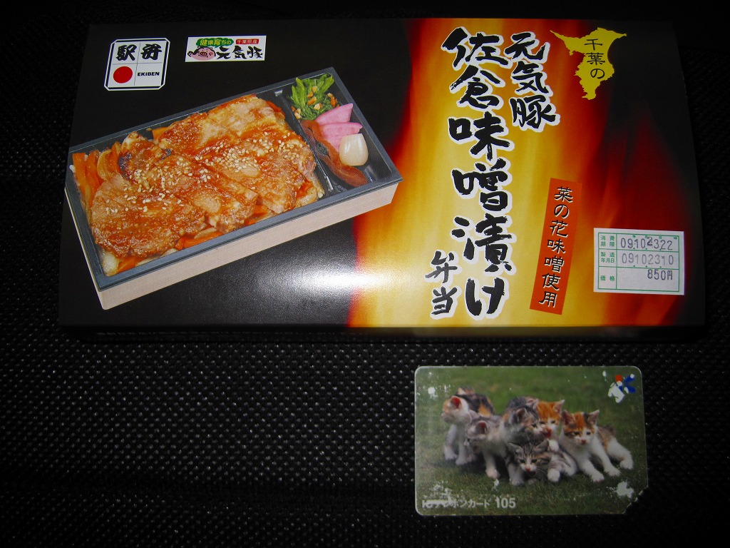 食べればB級グルメ感が満点の豚味噌焼弁当で、中身も掛紙も燃えるようなパワーがみなぎる印象。650円の駅弁なのに本格的な豚焼肉重、しかし豚肉に白く脂が浮いていて、千葉駅弁らしいチープさが出ている。掛紙記載「レンジアップで一層美味しく」のとおり、駅弁売店ではレンジでの加熱を推奨しているそうで、そうすると容器が溶けてしまうのではと思うが、見栄えと味からチープさが消えてくれそう。1年程度の販売で終売か。