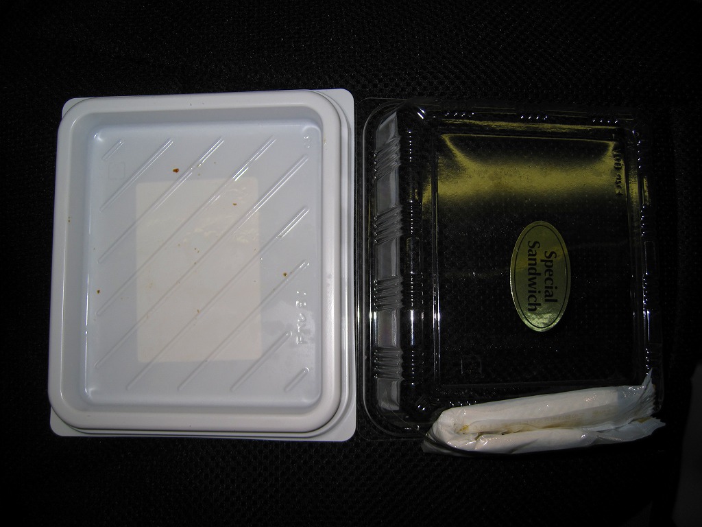 2009(平成21)年8月に発売か。駅弁屋が千葉のご当地サンドを開発したものだそうな。B級グルメの下を行くトンカツ弁当のカツと異なり、現代的かつ都会的な食感を持つカツがサンドイッチになり、プラ製ケースに3切れ収まる。この「千葉みそソース」版の他に「落花生ソース」版がある模様。2013年頃までの販売か。