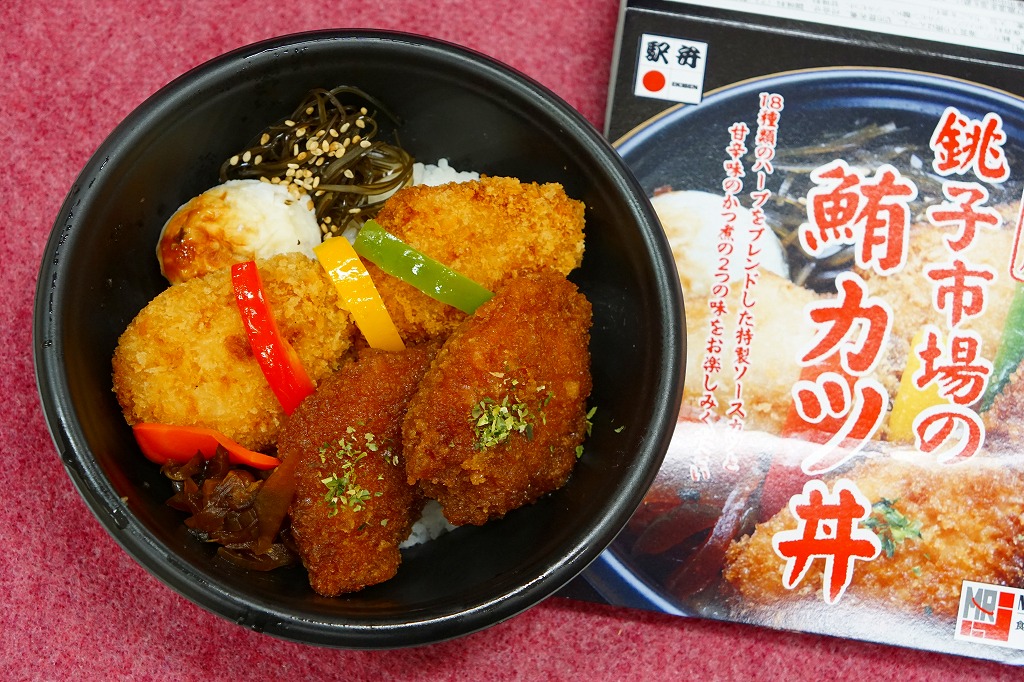 2014(平成26)年1月までに週末限定の駅弁として発売か。中身はパッケージの写真のとおり、黒い丼に白御飯を盛り、三色のピーマンやパプリカで彩った銚子産マグロのソースカツ2個と甘辛味かつ煮2個、はんぺん、切り昆布煮、漬物を載せる。18種類のハーブをブレンドしたという味はカジュアルで、御飯が進む。食品商社大手の日本アクセスの東日本大震災復興支援活動「ミールリングス」のロゴがあるため、1個あたり1円が東北3県へ寄付されたはず。価格2015年の購入時で980円、2015年7月から1,000円。2016年までの販売か。