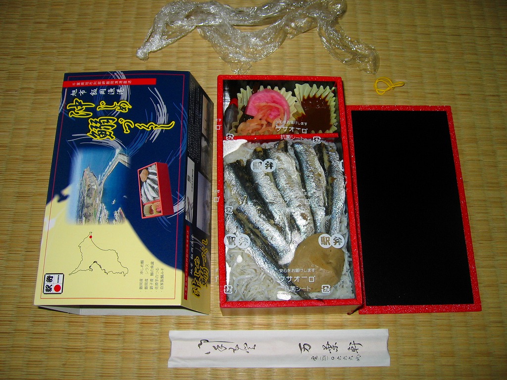 2004(平成16)年前半頃の新作も、2002年の春に同じ名前の駅弁を見たという報告がある。黒塗りの長方形な容器に割り箸とナイフを添えて、掛紙で包み輪ゴムでしばる。中身はゴマ混じりの酢飯の上にシソを挟んでイワシを載せるもの。