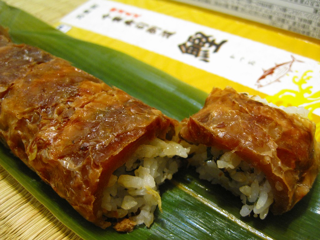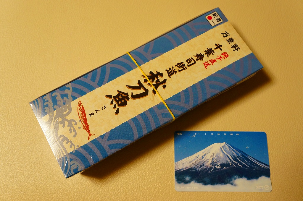 2010(平成22)年の5月までに発売か。従前の類似品を統合したのか、アジ、タイ、サンマ、イワシとこのサンマで5種のシリーズを組む。こちらは円筒状の酢飯に、サンマの西京焼とおぼろ昆布を半周以上巻き付けて、透明なシートを巻いてから笹の葉の上に置き、駅弁の名前を書いた専用の小さなボール紙箱に収めるもの。