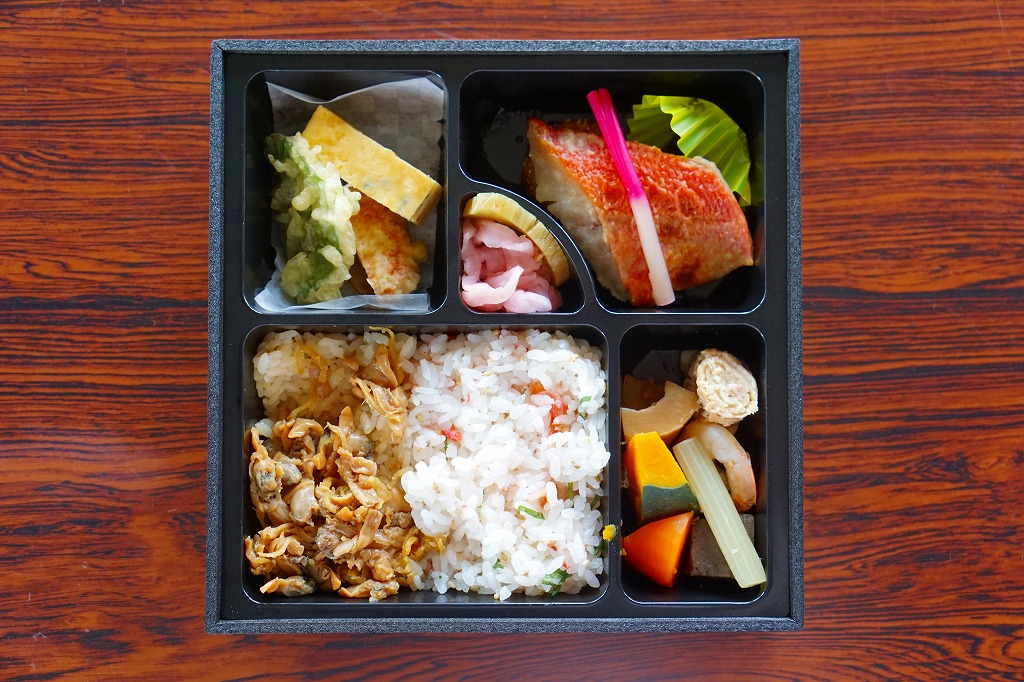 掛紙に代わる紙帯に、駅弁を示したり思わせる表示はない。中身はおおむね共通で、今回はサクラエビ飯とアサリ飯、キンメダイの西京焼、イワシのさんが揚、豚肉とタケノコの巻き物、シイタケやエビの揚げ物、カボチャやニンジンなどの煮物、五目玉子焼、海苔の佃煮など。市販されたのは2017年頃までのようで、以後は7日前まで20個以上の予約限定で注文を受けていた。2020年の春頃までに、ひっそりと終売か。