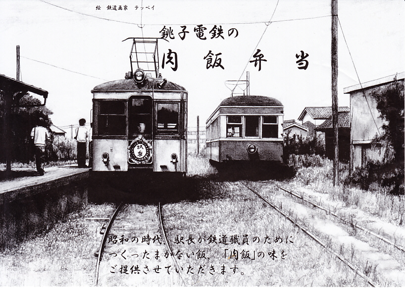 2012(平成24)年12月12日に、銚子電気鉄道史上初の駅弁として発売。2009(平成21)年6月に犬吠駅で「さんまかば焼ずし」が出ていたという情報はある。鉄道会社に寄せられる駅弁希望の声を受けて、昭和50年代に仲ノ町駅の秋山駅長が、勤務時間中に調理して駅員や職員が食べる賄い料理として社内で好評だったメニューを、銚子市内の弁当業者に依頼して再現し、販売されたもの。駅では売らず、銚子駅から徒歩3分の観光商業施設「銚子セレクト市場」内での販売であり、電車の車内にもそのように掲示された。