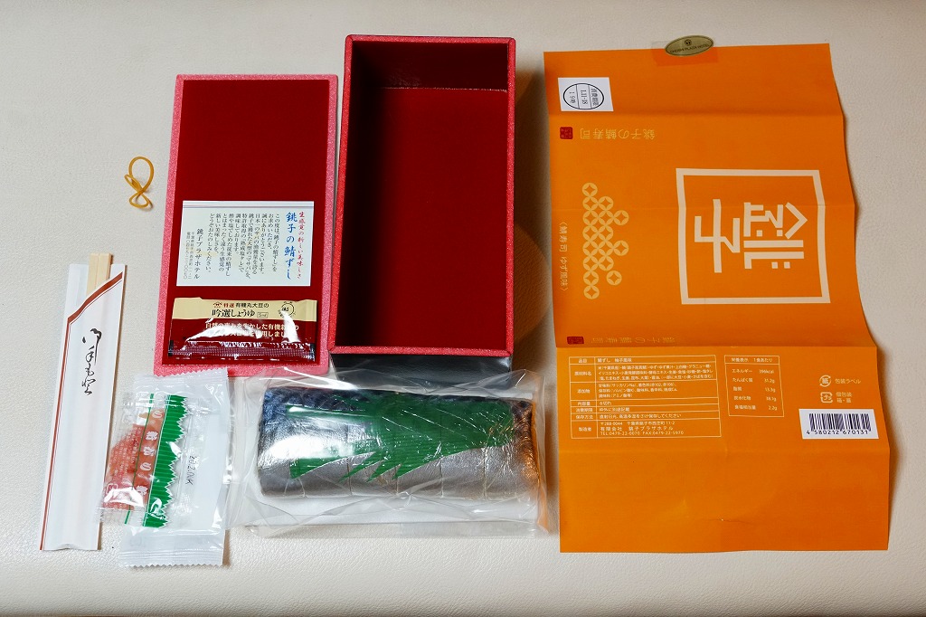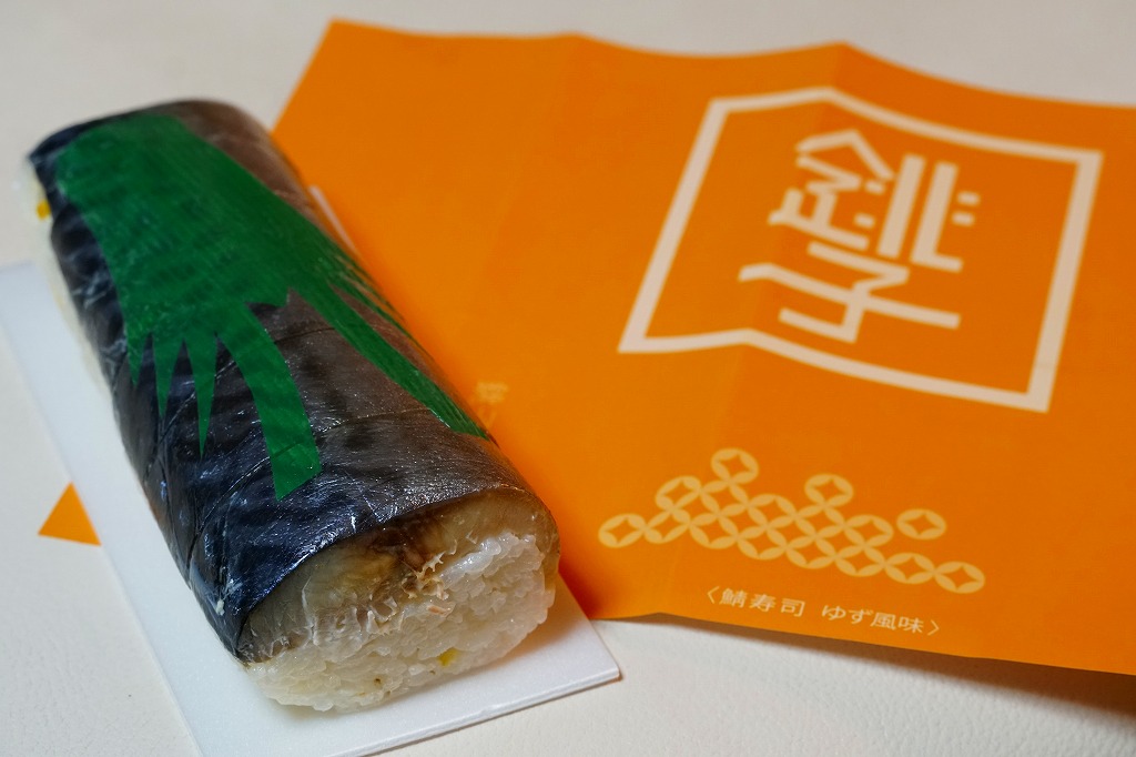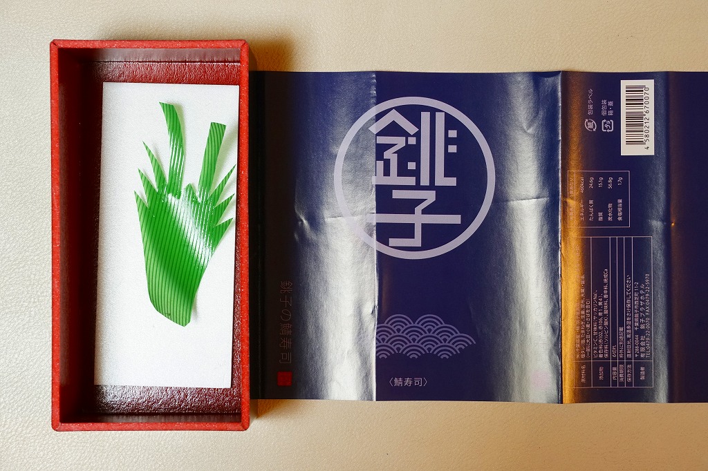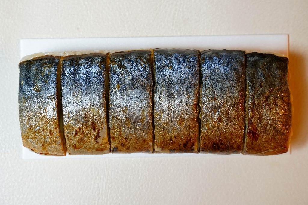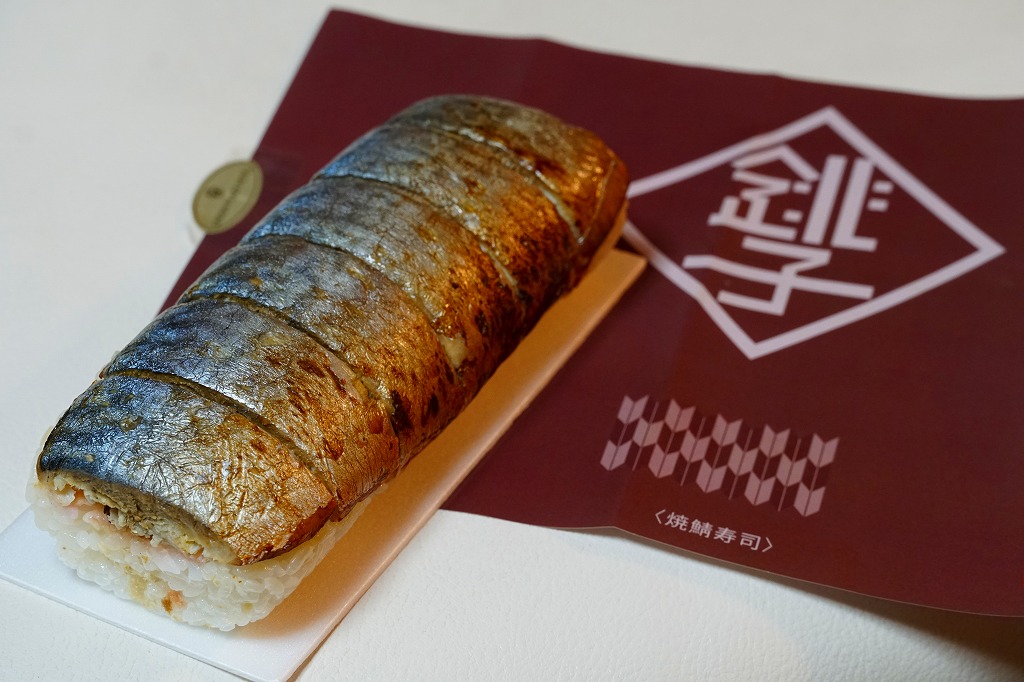 体裁としては、棒寿司が1本。酢飯に銚子産マサバを合わせた、魚肉ソーセージ3本分くらいの細身の棒寿司が、ラップに包まれ、透明な袋に密封され、ガリや醤油や割りばしなどとともに箱詰めされる。特許取得の熟成塩タレで調味したというサバ寿司はぷりっぷりで、新鮮な印象で、それなのに手にも味にも脂ひかえめで、酸味はほとんどなく、素晴らしいうまさ。価格は2019年時点で1,080円、2023年時点で1,200円、10月までに1,500円、2025年時点で1,800円。