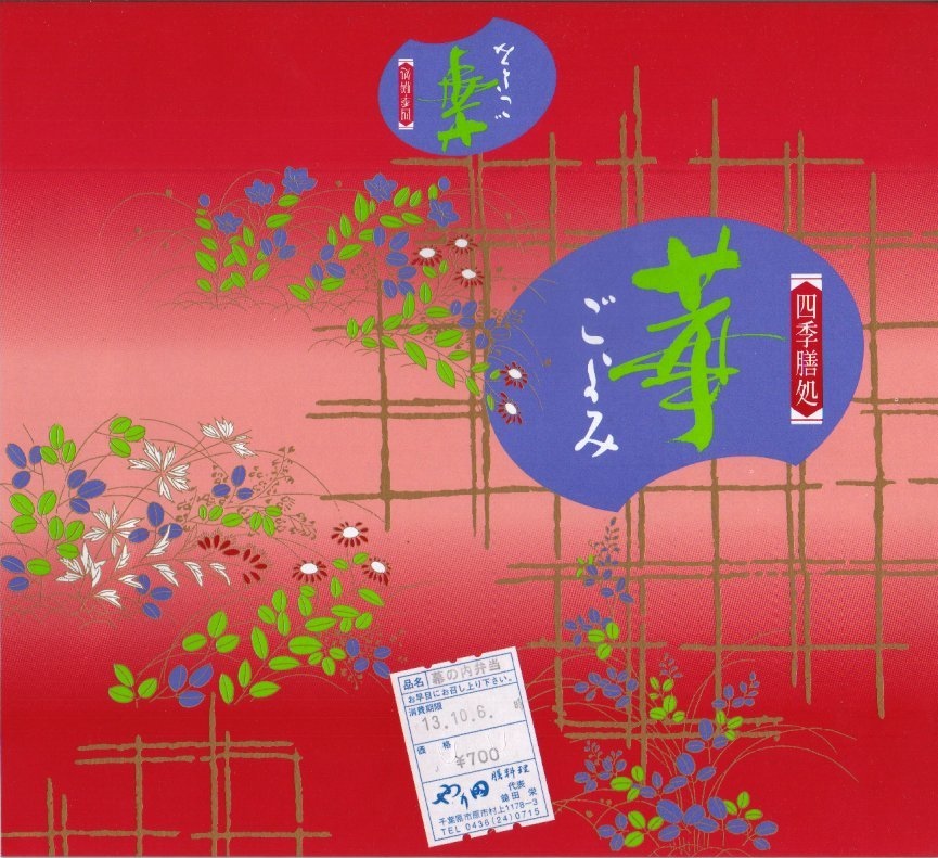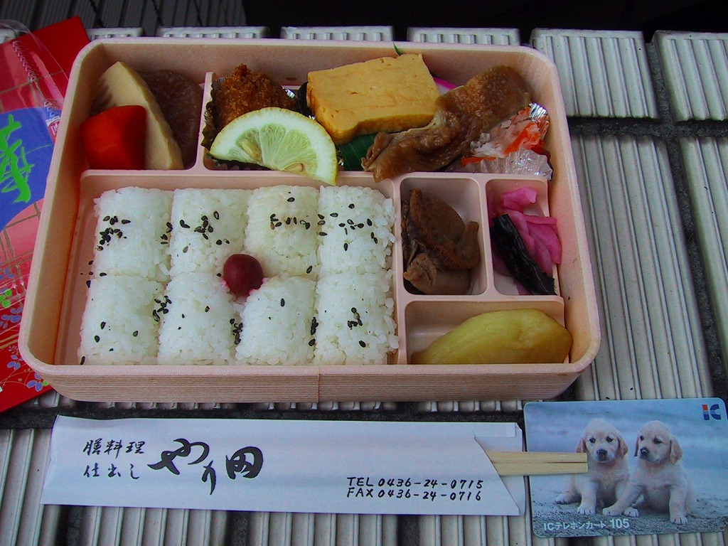 私鉄の駅弁は情報が現地から外に出ないため、その把握は困難だ。これは横浜での鉄道フェスティバルの小湊鉄道ブースで購入し、係員が五井駅弁であると強調していたもの。中身は典型的な幕の内弁当であるが、駅弁にしてはずいぶんと汁気が多く、箸袋に記されるとおり、これは駅弁ではなく仕出し弁当なのかもしれない。JR五井駅に駅弁はないが、小湊鉄道の五井駅で弁当販売が実施されていることがあるのは事実らしい。