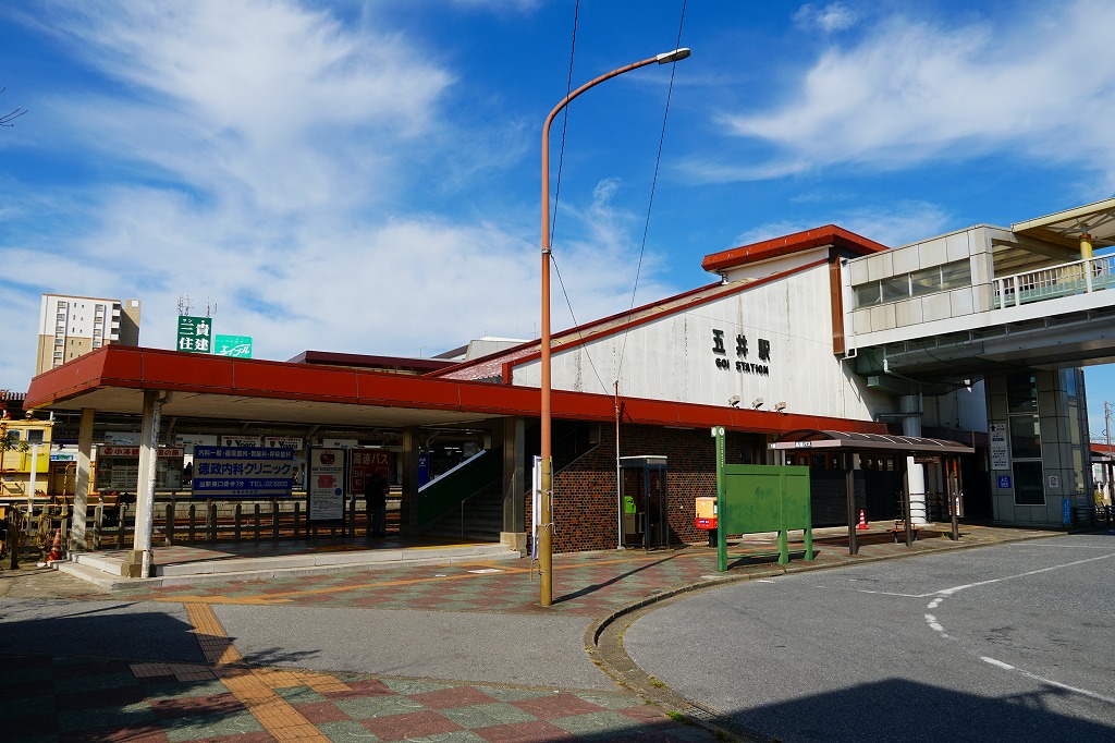 千葉駅からJR内房線の電車で約20分の、小湊鐵道の始発駅。五井駅がある市原市は、千葉県の中央部で東京湾に面する、人口約26万人の工業都市。古代に国分寺が置かれ市が立ち地名となり、以後長らく農漁村であったが、戦後昭和に京葉工業地帯と宅地やゴルフ場が立地し変貌した。1990年代までにはJR駅と小湊鐵道駅を結ぶ跨線橋で日中に様々な惣菜が売られるようになり、ここで買えた安い弁当が駅弁と紹介された。1925(大正14)年3月7日開業、千葉県市原市五井。