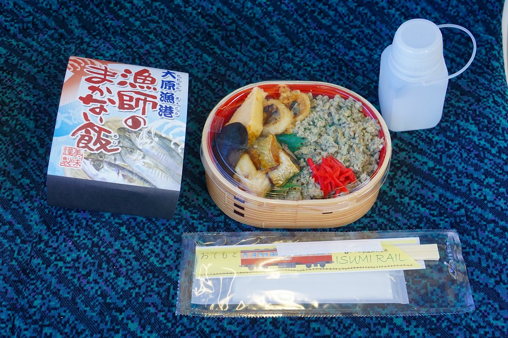 太平洋に面するはずが、駅も駅前にも海が一切感じられない大原駅で、たっぷりのお魚を柔らかく、かつ御飯の友にでき、当然に酸味でなく、こんな所にこんなにうまい魚駅弁があったのかと驚くもの。他の大原駅弁と同じく、ポリ茶瓶がひとつ付いてくるが、この駅弁はお茶漬けで食べることも推奨されていることを、食べて帰った後で知った。土休日のみ販売、購入時はいすみ鉄道への予約を推奨。