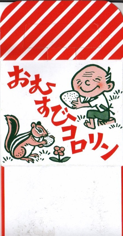 ボール紙を立体に組み立てたスナック菓子のようなパッケージの中に、おむすびが3つで380円+消費税。おむすびは最近はコンビニでも復活しつつある、あらかじめ海苔が巻かれて湿ったタイプで、かわいらしい外観に懐かしい味。駅構内では買えず、駅前広場に面した階段下の小さな小さな売店で販売されていたが、2002年3月31日限りで駅弁業者の撤退により終売となった。