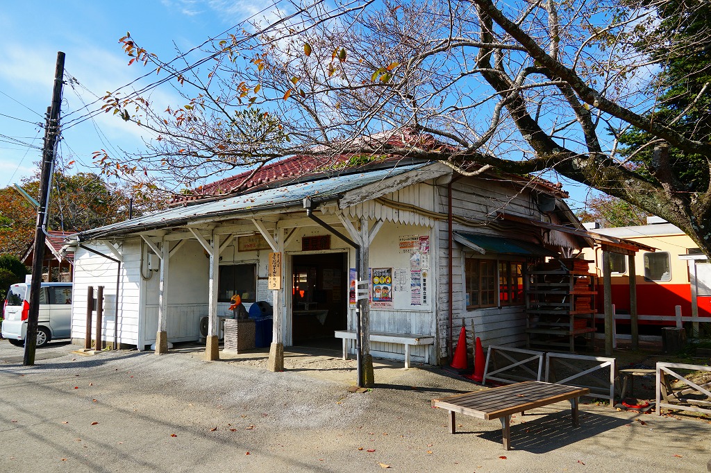 五井駅から小湊鐵道で45分。里見駅は小湊鐵道線の主要駅のひとつで、トロッコ列車が停車し、過去には砂利の出荷で賑わった。不定の週末に喜動房倶楽部による物売りがあるといい、駅弁のような弁当が売られることもあるらしい。1925(大正14)年3月7日開業、千葉県市原市平野。