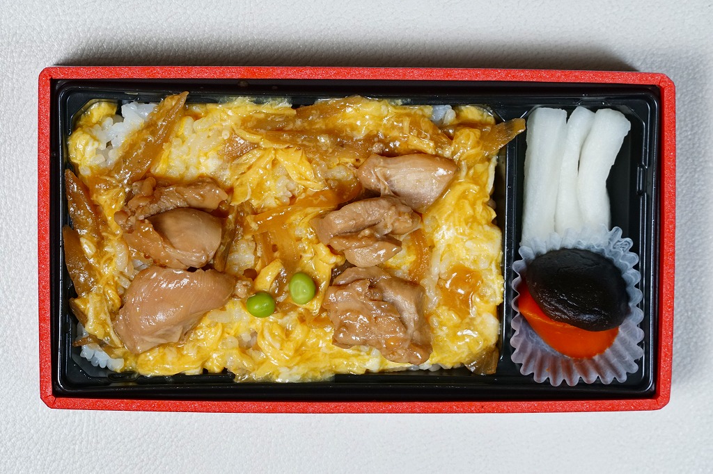 2025(令和7)年1月までに羽田空港で発売された空弁。東京などでチェーン展開する京都の京料理店「たん熊北店」ブランドのお弁当で、東京でのみ販売か。商品名やブランド名に中身の美しい写真を載せたスリーブに収めた長方形のプラ容器に、白飯を敷き、鶏すき煮の卵とじで覆い、煮物とゆず大根漬を添える。シンプルに作られた、冷たくても出汁が香る、おいしい鶏肉丼。こうして東武浅草駅弁の一部は羽田空弁である。