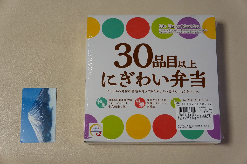 2017(平成29)年6月1日のリニューアル。従前の「やさいたっぷり弁当」と「400kcal台弁当」を融合か。中身は雑穀入り俵飯2個と黒米俵飯1個と鶏照焼、ヤングコーンやレンコンなどの野菜類と玉子焼と白和え、ナスとニンジンとサトイモの揚げ物と魚肉ハンバーグ。