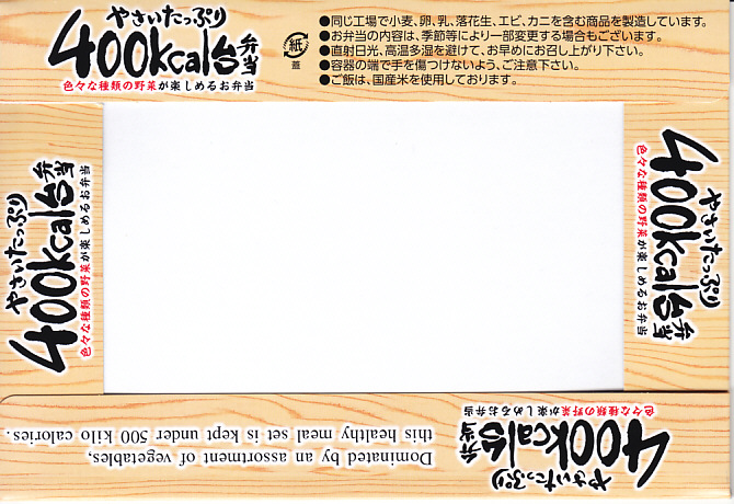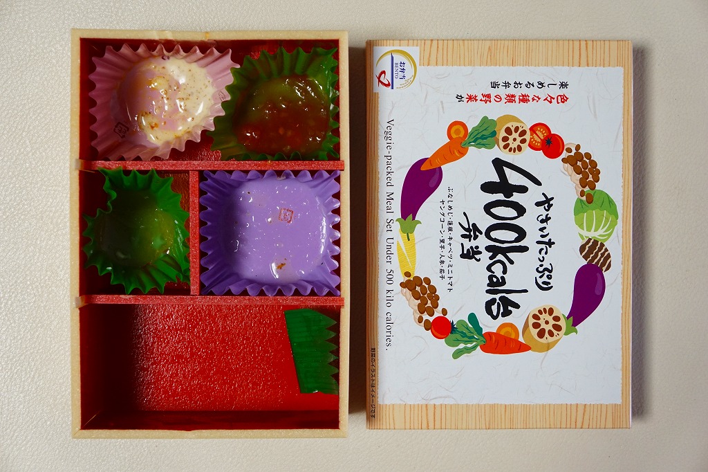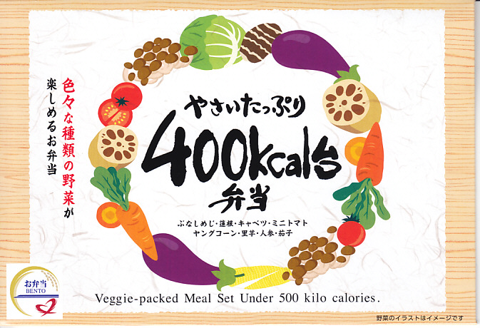 野菜の使用に加えてパッケージに中身の食材を描く点で「やさいたっぷり弁当」を、カロリーを今回購入のもので474kcalに抑えた点で「400kcal台弁当」を受け継いだ。本物の肉や肉の味が入り、野菜ばかり食べさせるような感じがなく、薄味や低カロリーで物足りなくなることなく、味と食感は弱くなかった。調製元の宣伝文どおり、カロリー控えめながら、満足の出来るお弁当。2020年までの販売か。