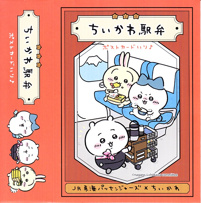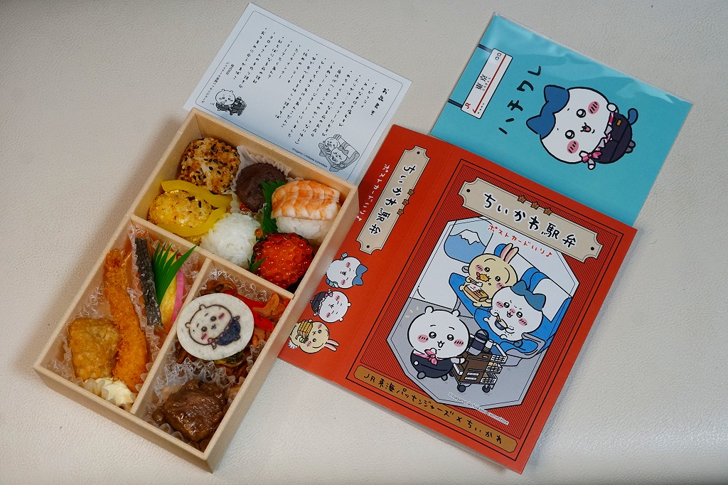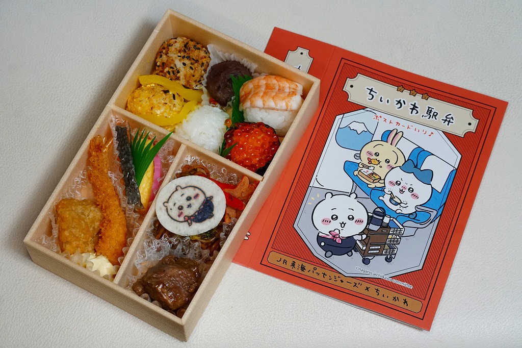 2023(令和5)年の3月8日から14日までと、4月5日から11日まで、東海道新幹線の東京、名古屋、新大阪の各駅で販売。SNS「Twitter」発の人気キャラクター「ちいかわ」について、販売元のジェイアール東海パッセンジャーズが2023年3月8日から、駅弁や各種グッズのコラボレーションアイテムを、駅売店やオンラインショップで売り出したもの。
