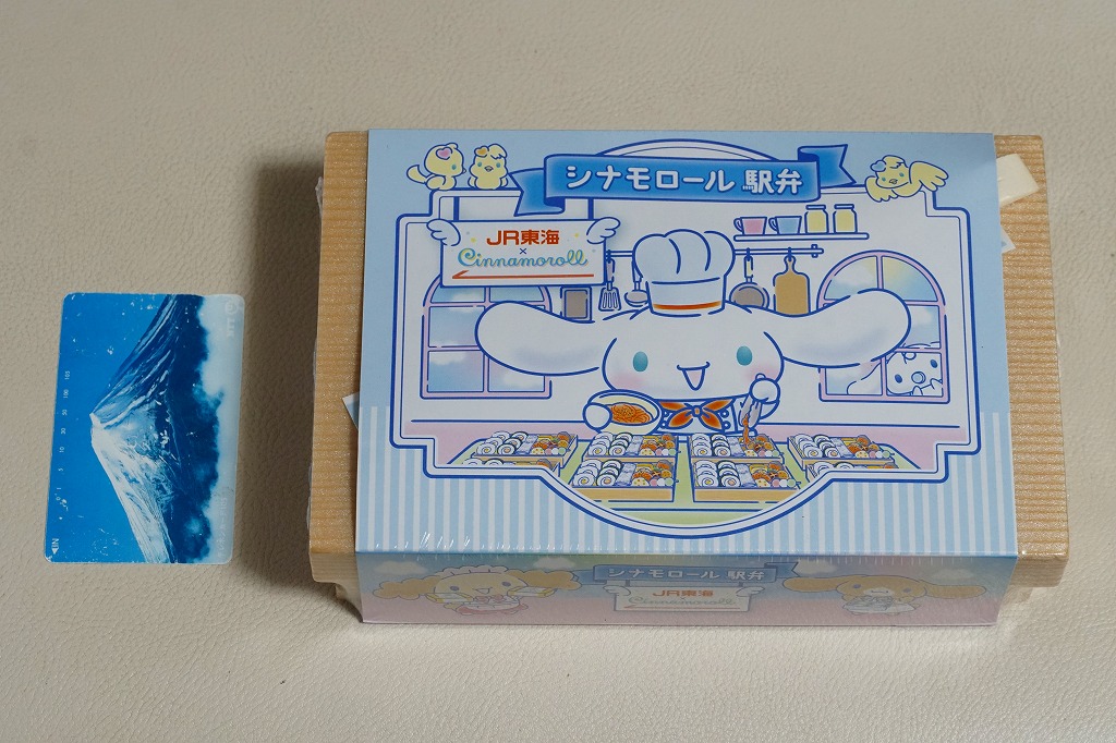 2025(令和7)年8月19日から9月8日まで、東海道新幹線の東京、品川、新横浜、名古屋、京都、新大阪駅の売店で販売。同期間のJR東海(JR東海リテイリング・プラス)の「シナモロールコラボキャンペーン」で、フェア描きおろしデザインのオリジナル駅弁や、おにぎり・サンドイッチ・スイーツ、缶バッジなどのオリジナルグッズのコラボ商品を限定発売した。