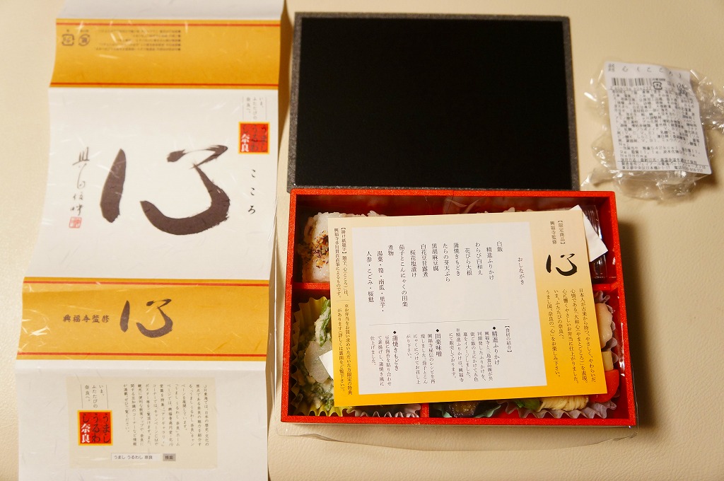 2013(平成25)年4月3日から6月上旬まで、東海道新幹線のぞみ号停車駅、つまり東京・品川・新横浜・名古屋・京都・新大阪の各駅で販売された期間限定駅弁。奈良県の興福寺が監修したといい、掛紙にはその貫首である多川氏の直筆による「心」の題字が描かれる。