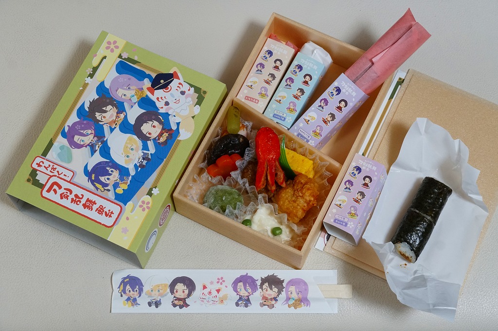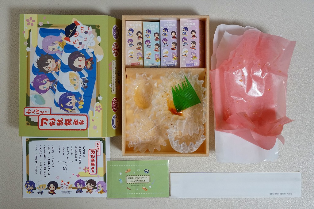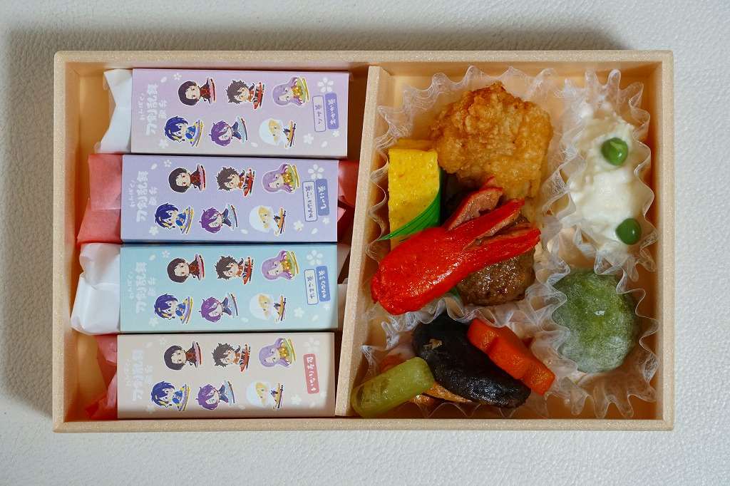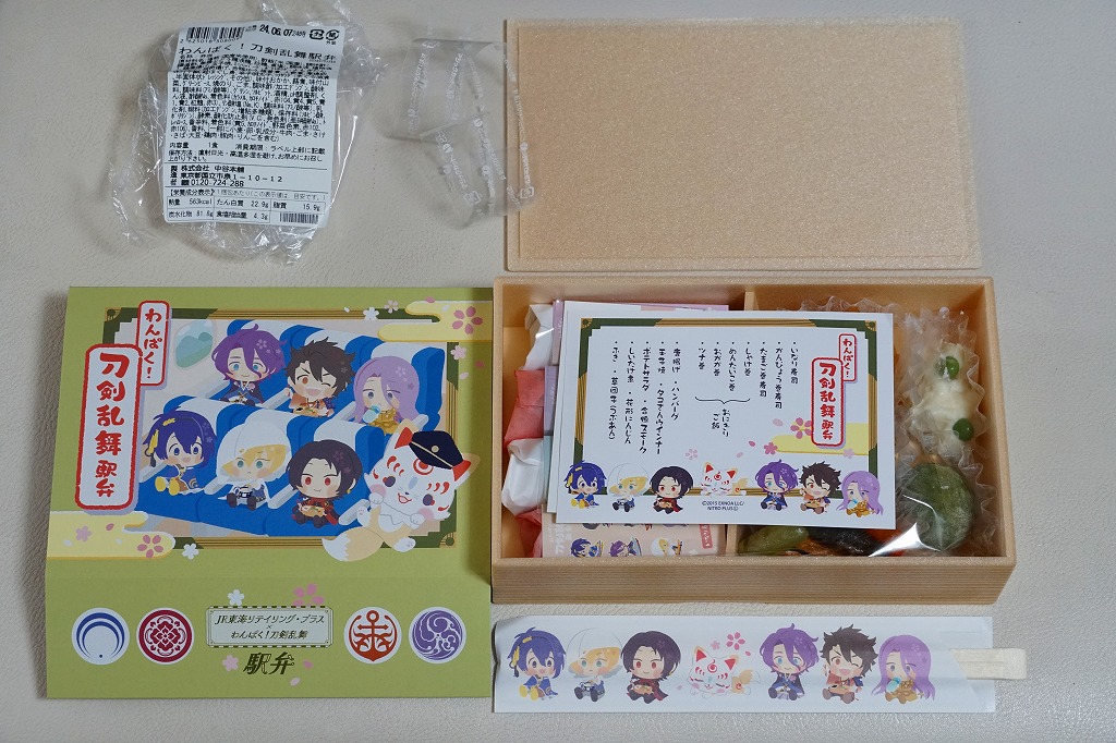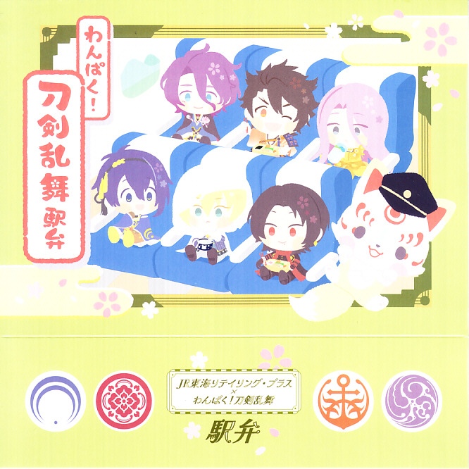 刀剣乱舞の駅弁は、水戸駅で2017年と2018年と2019年に出ている。今回はこのオンラインゲームに登場する「刀剣男士」なる美男子たちを、サンリオが2頭身のキャラクターに作り替えて、2020年1月からイラストやグッズを展開する「わんぱく!刀剣乱舞」とした。東京駅でJR東海の子会社が管理する地下商店街「東京駅一番街」でも期間限定の物販が年2回のペースで出ていて、この駅弁コラボにつながったのだろうか。
