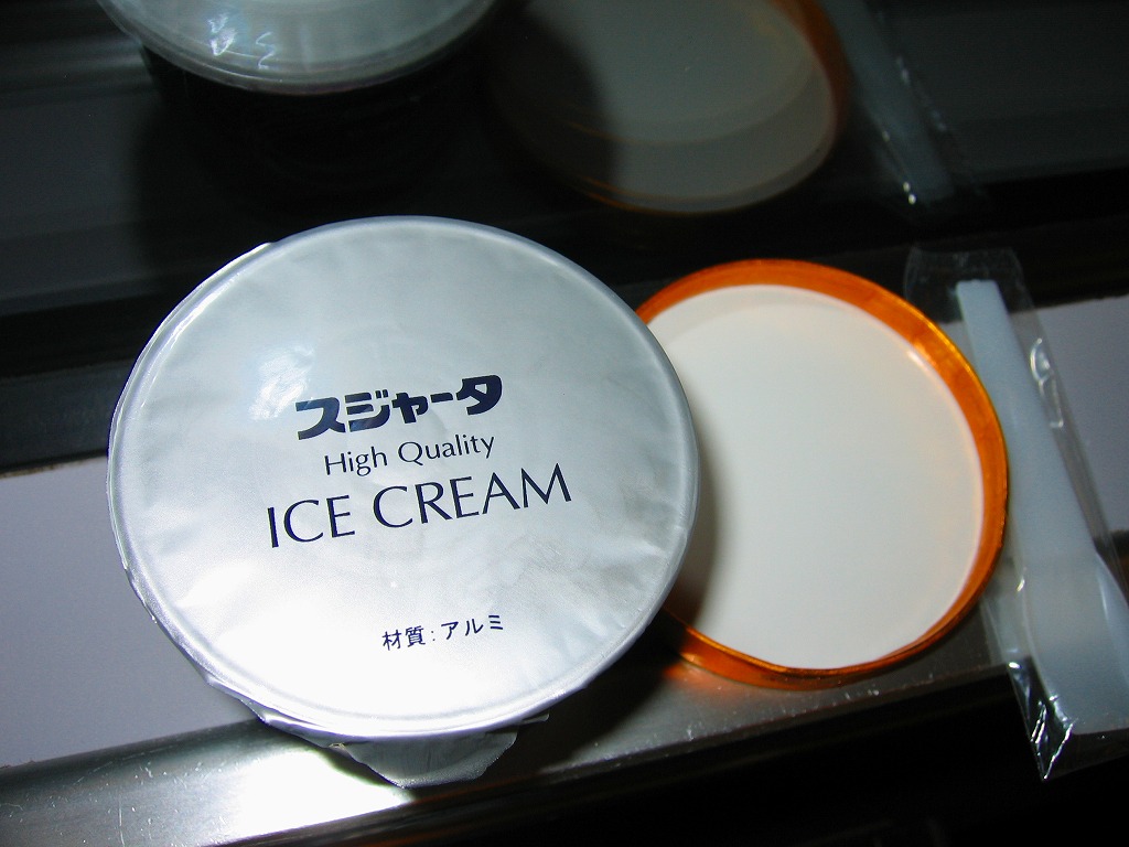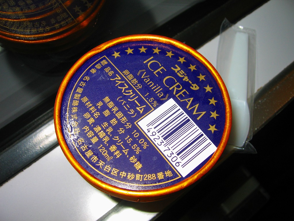 コーヒーフレッシュ「スジャータ」で知られる名古屋製酪(めいらく)の高級アイスクリーム。ふちが金色でフタや本体が群青色の紙カップいっぱいに、120mlのバニラアイスが詰まる。購入時はだいたいカチカチに凍っており、少々時間を置けばとても濃厚な風味を楽しめる。