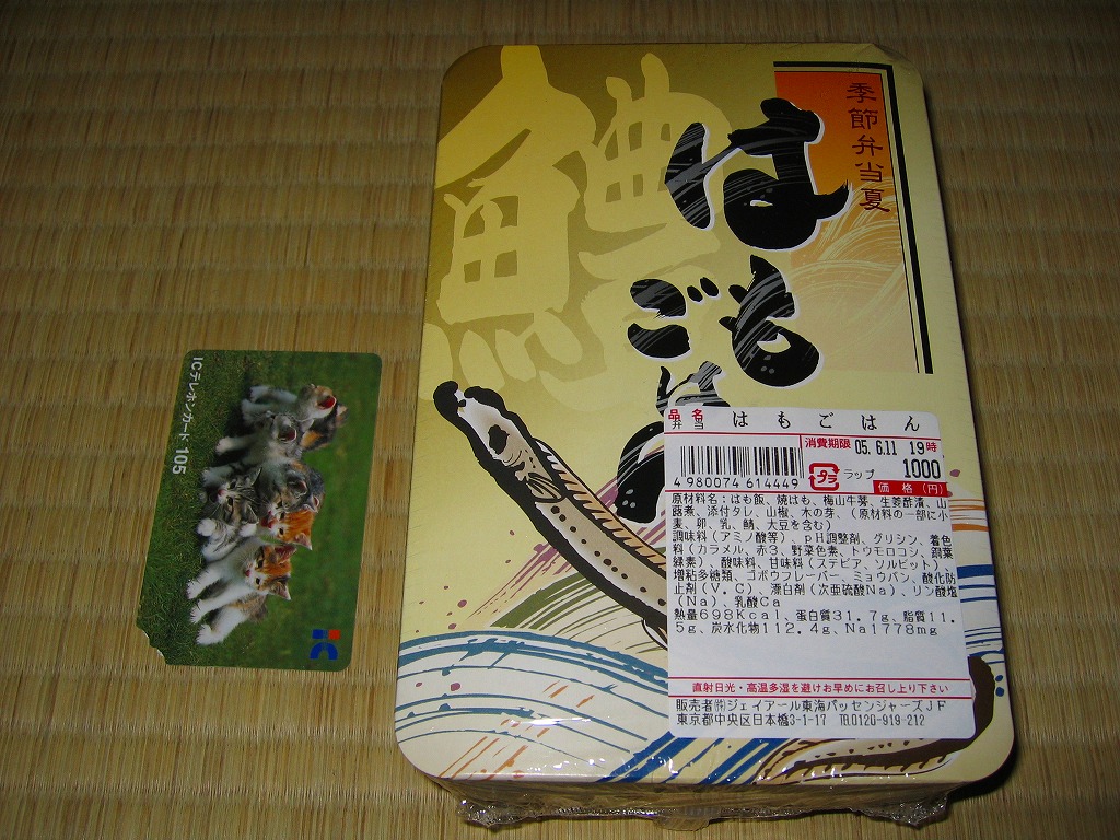 2005(平成17)年6月1日から9月14日まで、東京・品川・新横浜・名古屋・京都・新大阪の各駅と東海道新幹線車内で販売された、JRCPの季節駅弁の2005年の夏バージョンで、駅弁では珍しいハモのお弁当。以後も