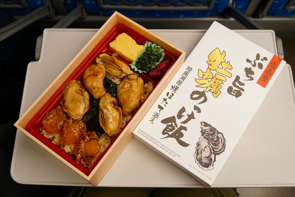 2020(令和2)年12月3日に東海道新幹線の東京、品川、新横浜、名古屋、京都、新大阪の各駅で発売。茶飯を海苔で覆い、ホタテ煮3個とカキ煮5個で埋め尽くし、玉子焼と野沢菜と柴漬けを添える。これほど巨大なカキを使う駅弁を、他に見たことがない。ホタテを含め、タレの味が強く、身の風味は弱めで、都会風の味。予定数量が無くなり次第販売終了とする。以後も12月から1月頃まで販売する冬季限定商品として売られる。