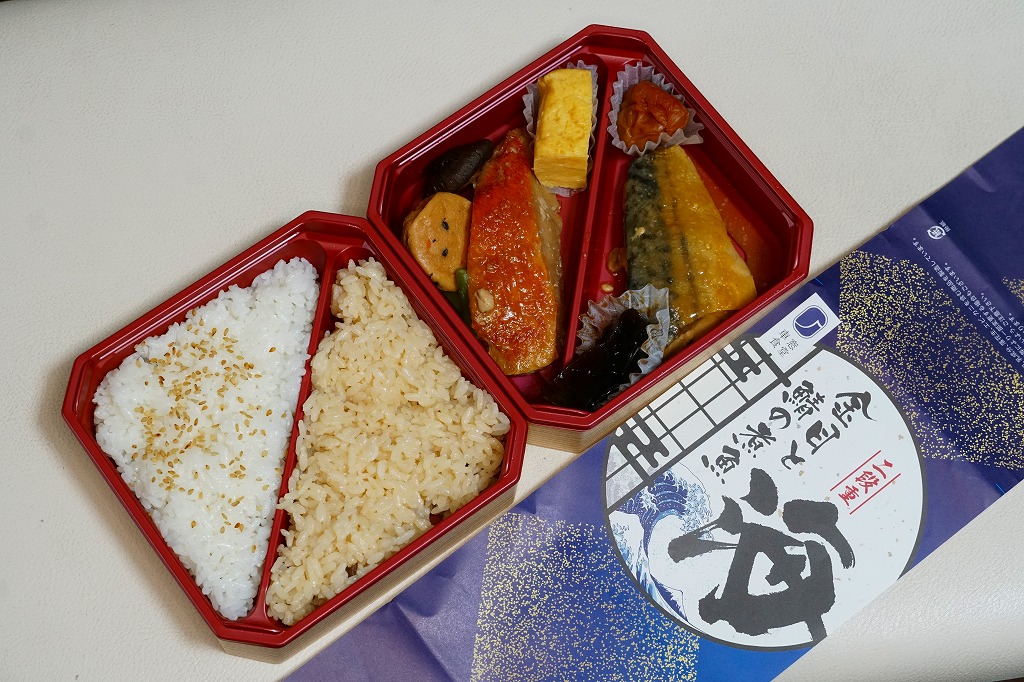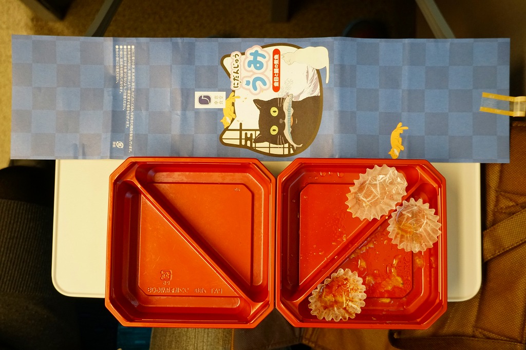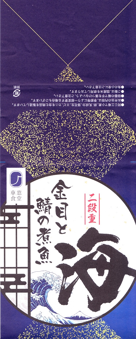 幕の内タイプの駅弁と考えると巨大な魚が2本も入る、お魚の、煮魚のお弁当。デパ地下で煮魚と御飯を買ってきたら同じものができそうで、惣菜が得意で駅弁では苦手な分野への挑戦に思える。タレや汁や脂が手指や掛紙やテーブルを汚さない、駅弁としての工夫があるのかもしれない。