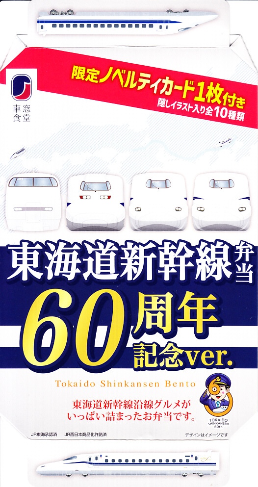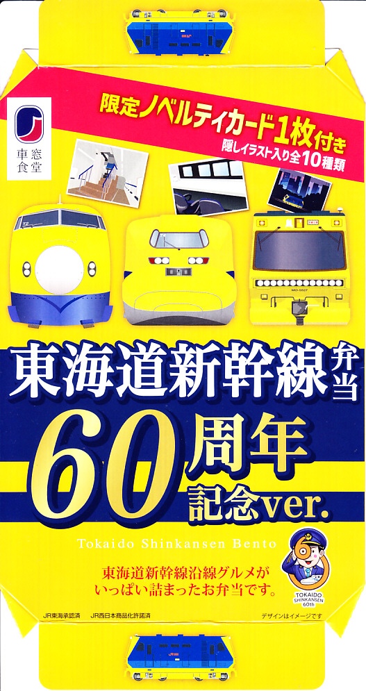 2024(令和6)年9月24日から10月14日までの予定で、東海道新幹線の東京、品川、新横浜、名古屋、京都、新大阪の各駅で発売。東海道新幹線の開業60周年を記念して、JR東海リテイリング・プラスが「祝!東海道新幹線開業60周年東海道沿線グルメフェア」を実施し、駅弁やおにぎりなどの食品にオリジナルグッズなどを、ベルマートやキヨスクやデリカステーションなどの売店で販売した。