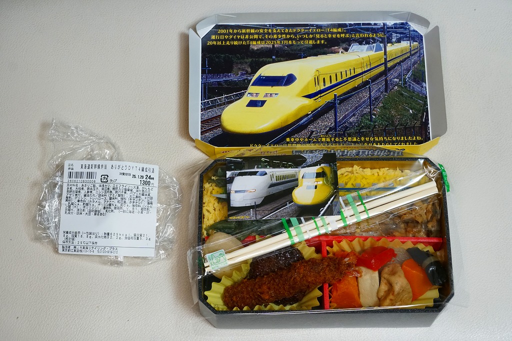 2025(令和7)年1月14日に、東海道新幹線の東京、品川、新横浜、名古屋、京都、新大阪の各駅で発売。2月13日から15日までの販売。JR東海が保有する「ドクターイエロー(T4編成)」が運行を終えることから、子会社のJR東海リテイリング・プラスが「ありがとう!923形ドクターイエロー(T4編成)幸せ届けるフェア」を展開、自社と淡路屋と笹八の弁当に、おにぎり、サンド、コンビニ弁当、スイーツや様々なオリジナルグッズを販売した。